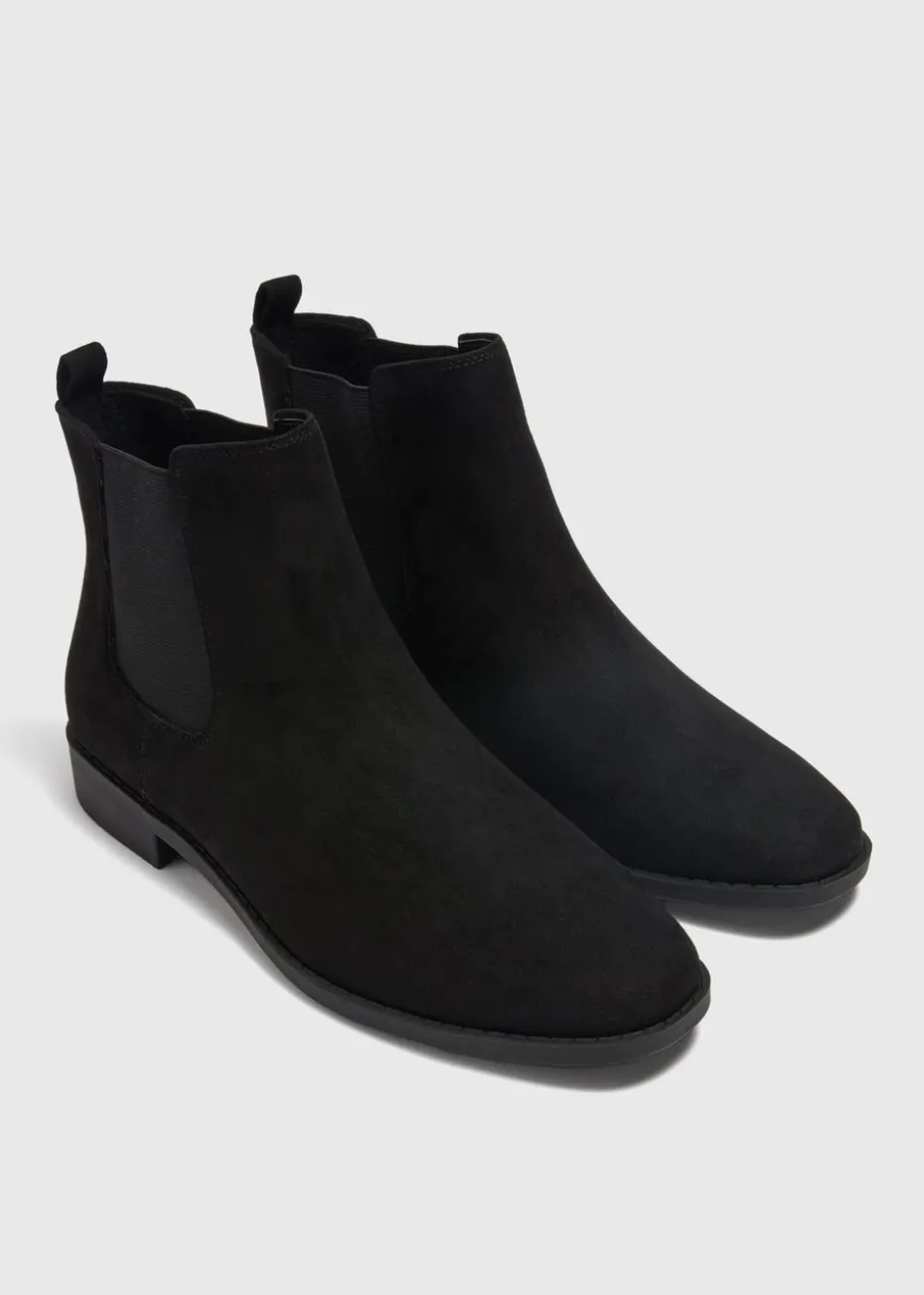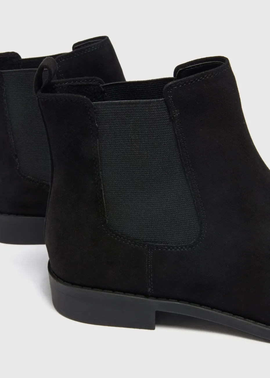 Introducing the Black Suede Look Chelsea Boots, a timeless and versatile addition to your footwear collection. Expertly crafted to mimic the premium texture of genuine suede, these boots offer a sophisticated and chic look that enhances any outfit. The classic black colour provides a sleek and elegant touch, making these boots a staple for any wardrobe. Featuring the iconic Chelsea boot design, these boots come with elastic side panels that ensure a snug and comfortable fit, while also allowing for easy slip-on and off. Pair them with skinny jeans, a tucked-in button-down shirt and a blazer for a sophisticated office look or dress them down with a pair of distressed denim, a graphic tee and a denim jacket for a casual day out.