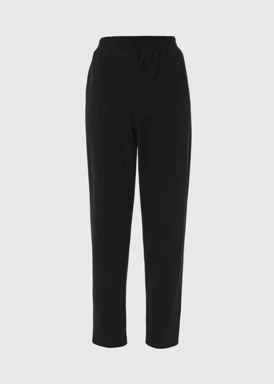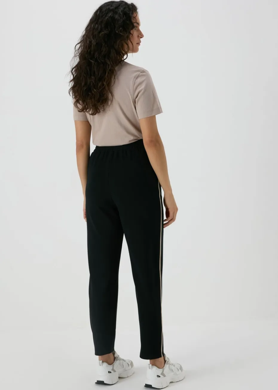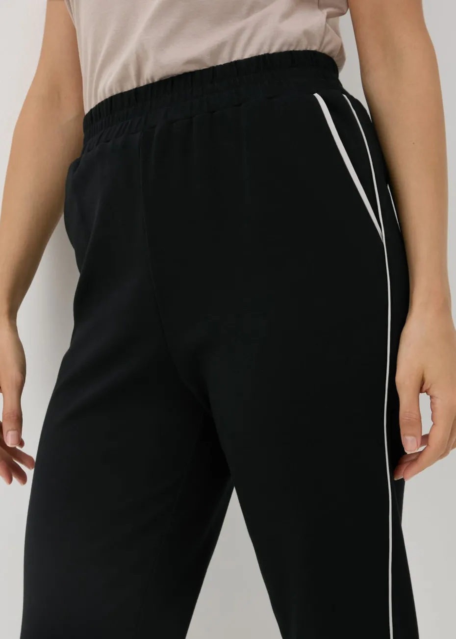Take your off-duty style to new heights with our Black Tapered Joggers. Cut from soft cotton fabric, these joggers offer the ultimate in comfort and breathability. Designed with a white tapered leg and a straight leg, they create a flattering silhouette that elongates your legs. The elasticated waistband with drawstring ensures a secure and adjustable fit. Pair with a crop top and sneakers for a casual and sporty look or dress up with a blouse and heels for a more sophisticated ensemble.