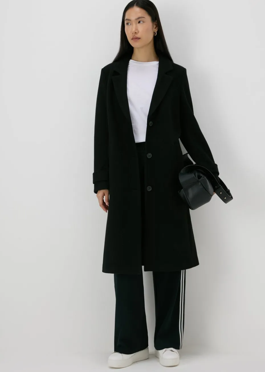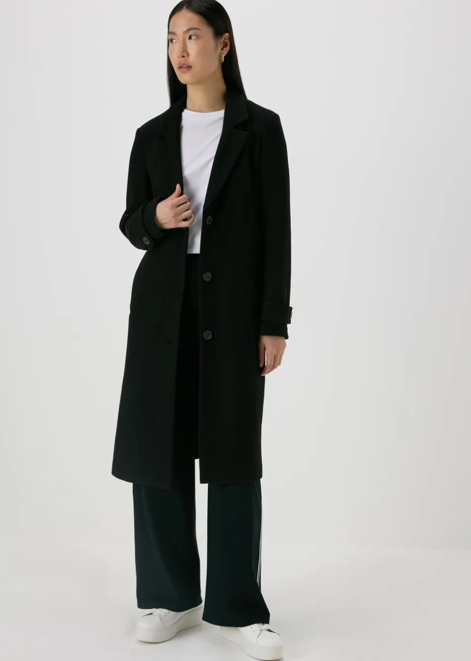 A timeless classic, our textured coat is crafted from luxurious materials and cut to a flattering, single-breasted silhouette. This coat features notch lapels, three front buttons, and a structured collar. The versatile black hue makes it a staple piece for any wardrobe, perfect for layering over dresses, skirts, or trousers. Layer over a dress and tights for a chic office look or pair with jeans and a chunky scarf for a casual weekend outfit