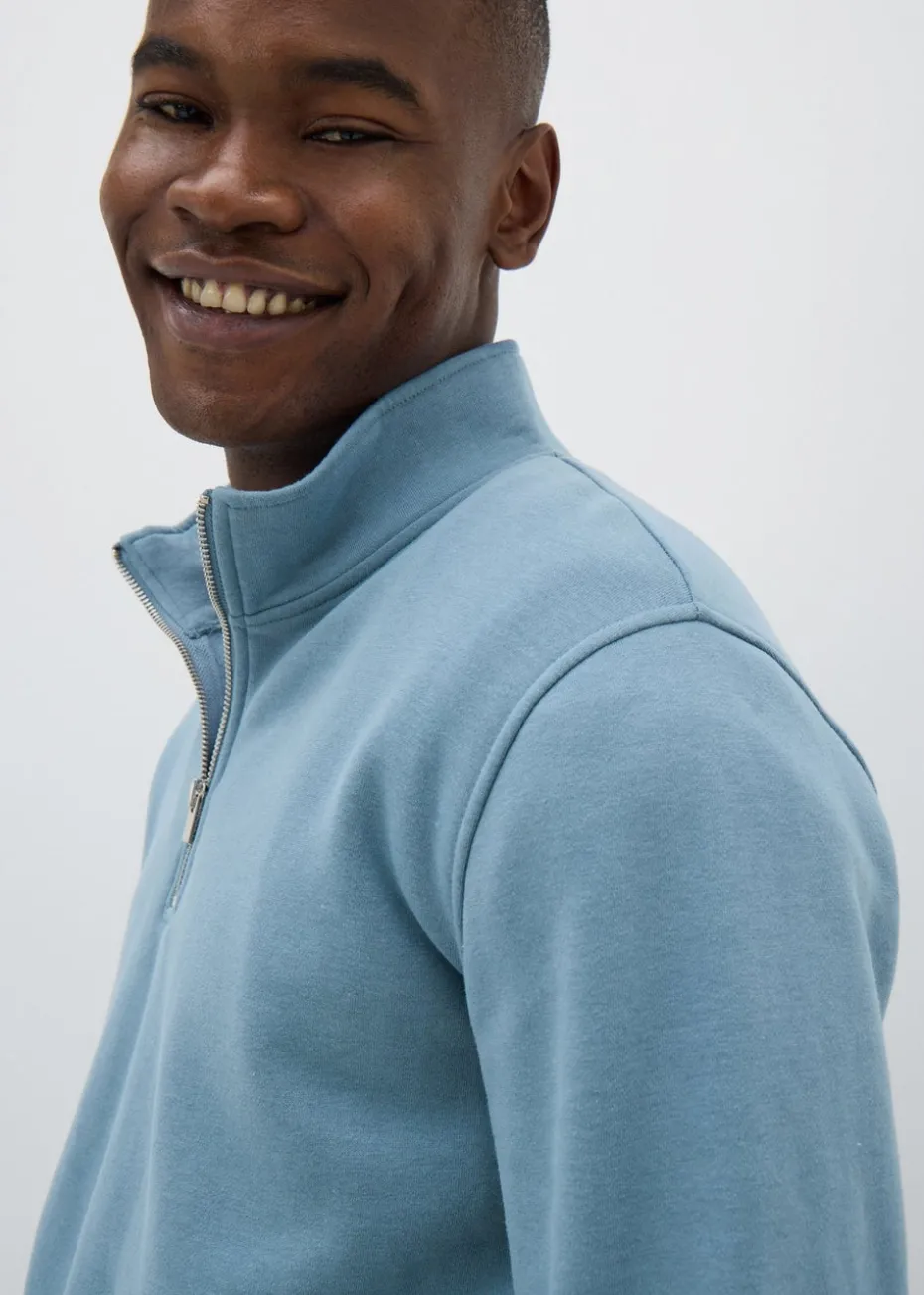 The Blue Funnel Zip Sweatshirt is a versatile and stylish layering piece, perfect for casual outings or relaxing at home. Designed with a practical funnel neckline and a half-zip detail, this sweatshirt combines warmth, functionality, and style. The soft blue colour provides a modern, understated look that pairs easily with various wardrobe staples.