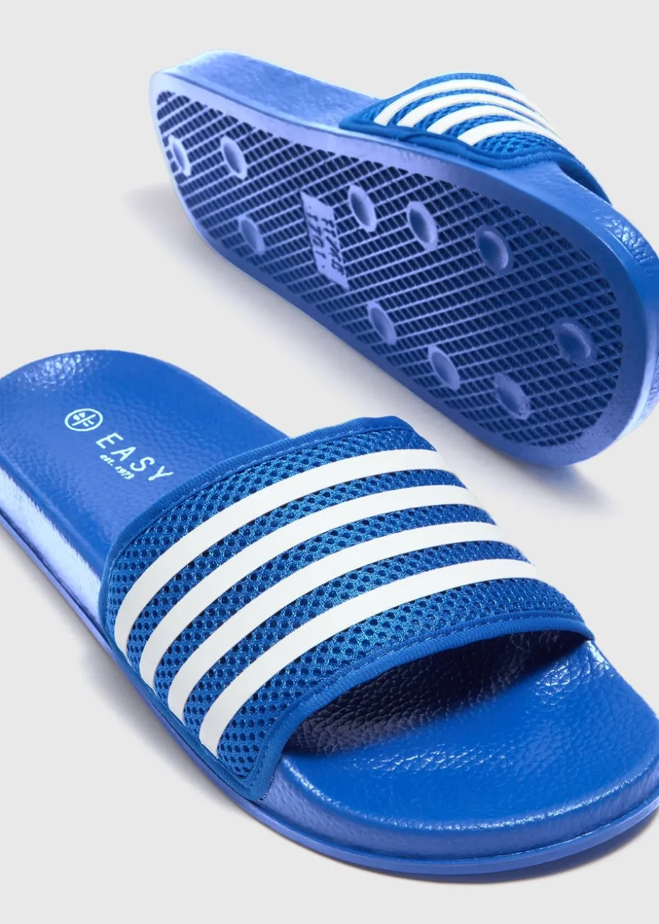 The Blue Mesh Stripe Sliders are a stylish and functional footwear option for casual wear, combining a sporty design with comfort. Featuring a bold mesh stripe detail across the strap, these sliders are perfect for poolside relaxation, beach days, or everyday lounging. The breathable materials and cushioned footbed make them an excellent choice for all-day wear.