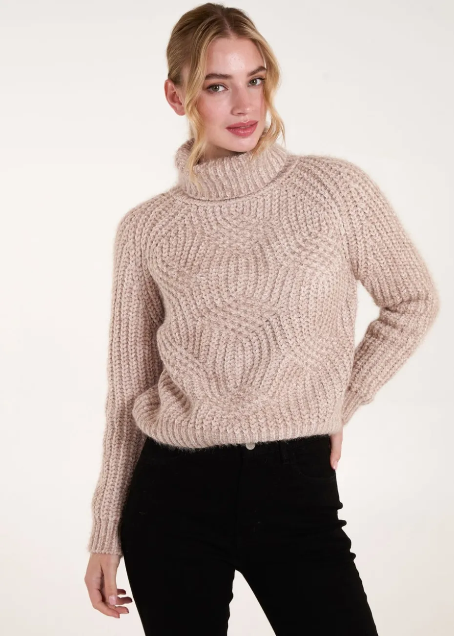 Blue Vanilla Beige Chenille Roll Neck Knit Jumper