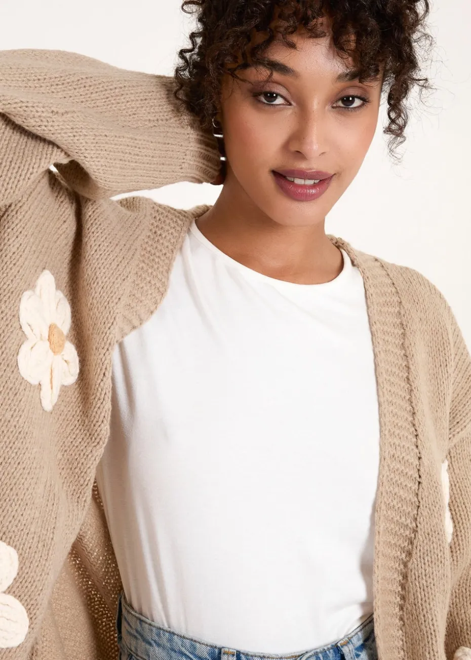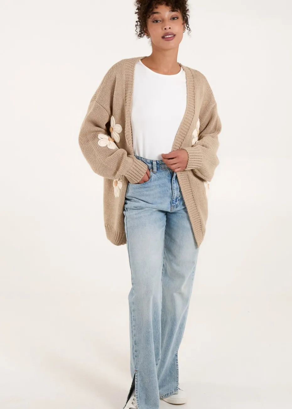 Taking it back to the 70’s this season! This oversized, daisy embroidery knitted cardigan provides just that! Team this chunky cardigan with flares and pumps and gain ultimate styling points this AW.
