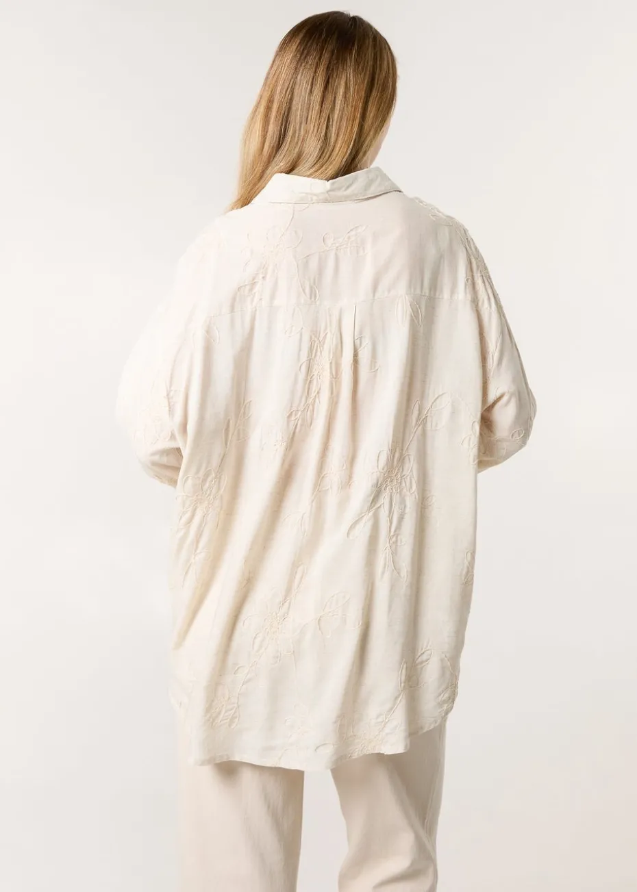 In an weighty, structured fabric that creates an effortlessly chic silhouette and with hidden pearlescent button, team this embroidery shirt with pumps for a casual office look and then add some heels for a perfect day to night summer time outfit.
