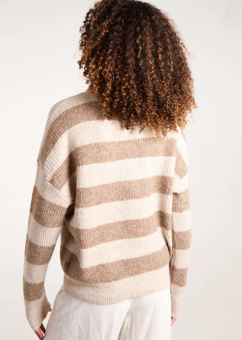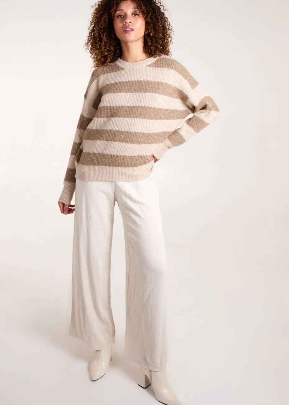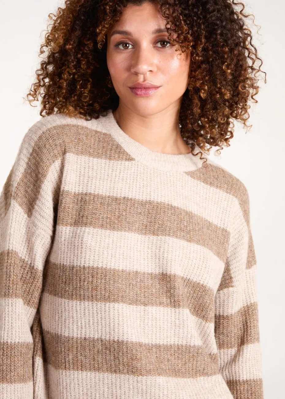 Blue Vanilla Beige Stripe Rib Knit Jumper