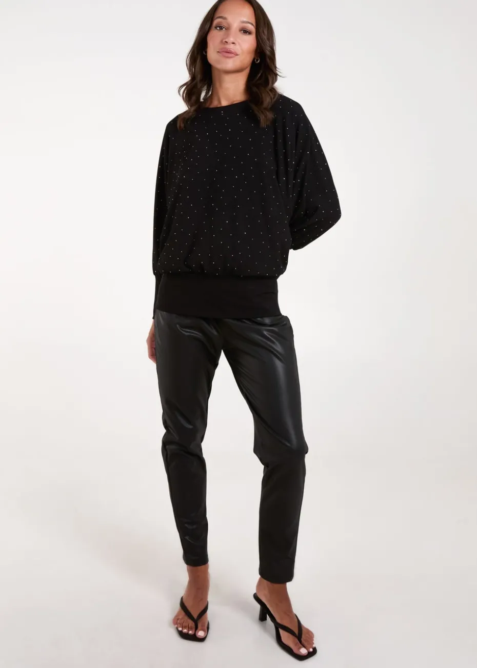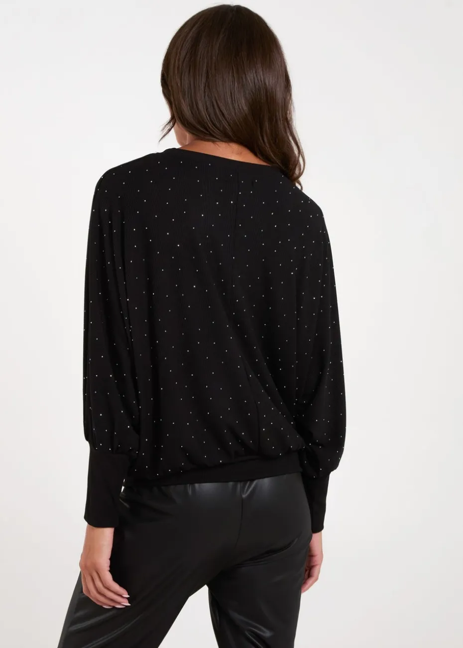 Blue Vanilla Black Batwing Top With Diamantes