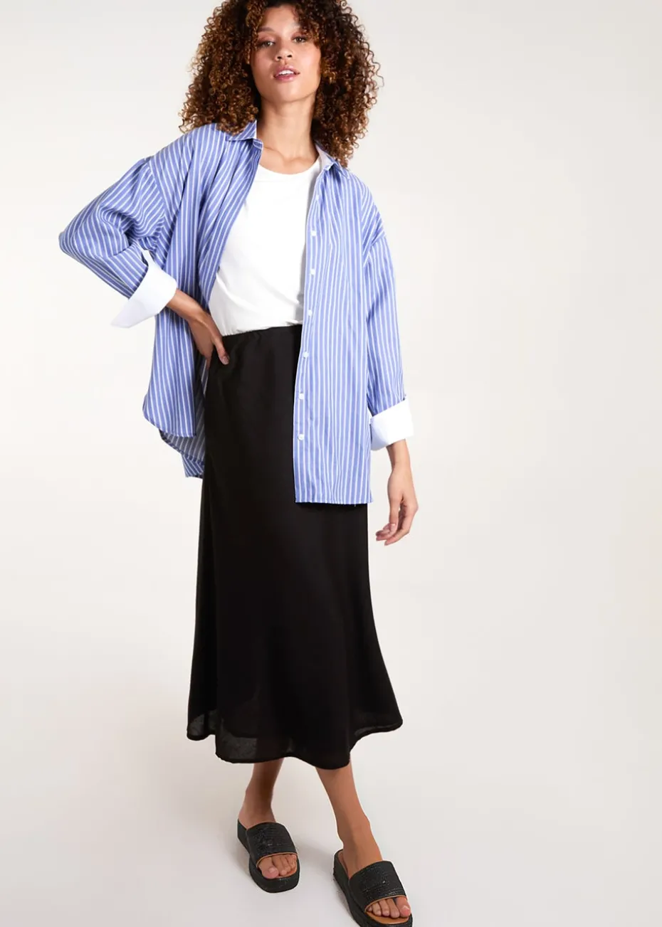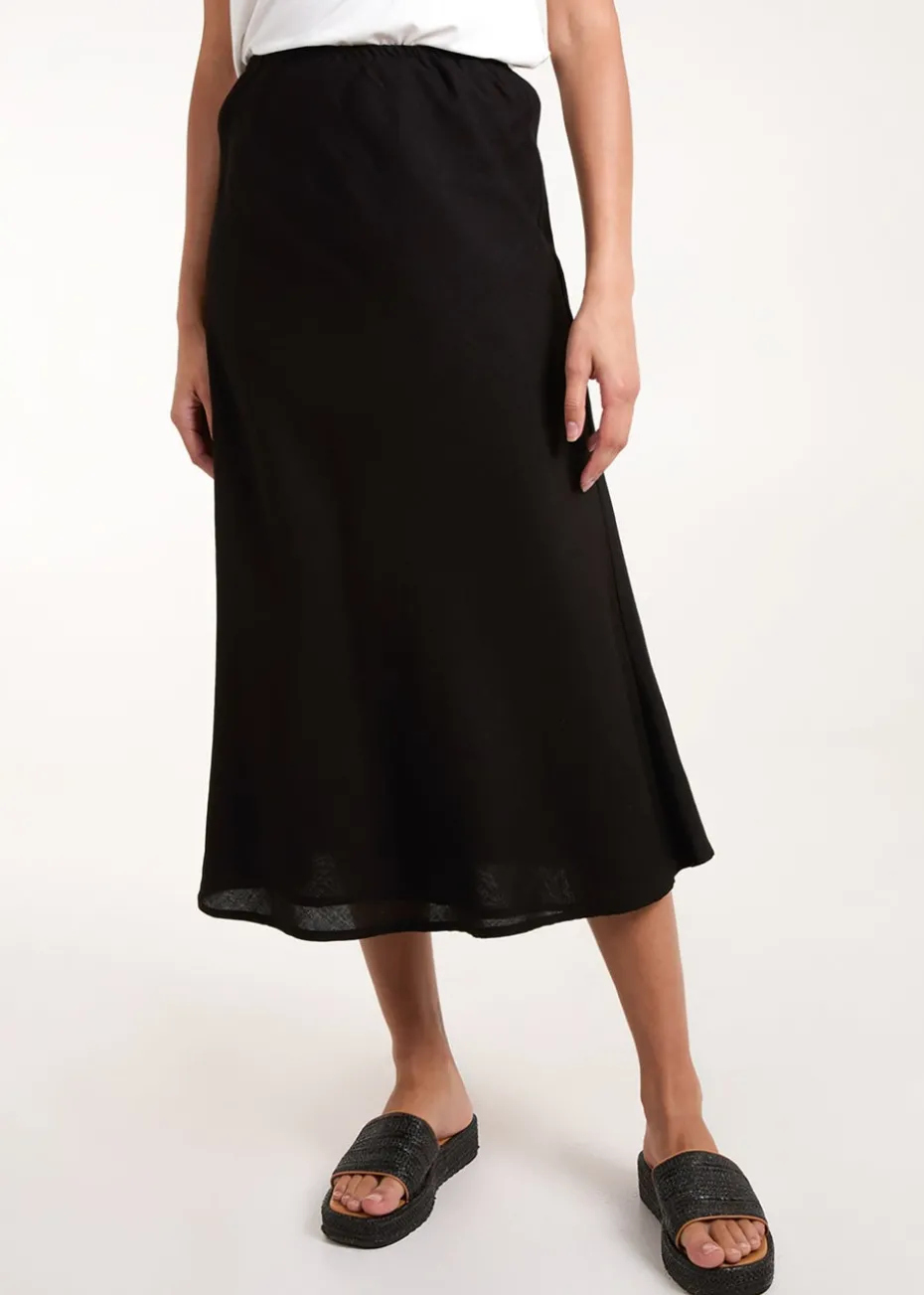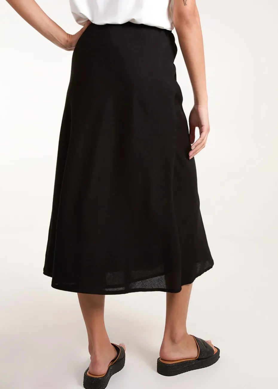 Slip into this elegant linen skirt this summer. A simple skirt that allows your top half and accessories to do all the talking.