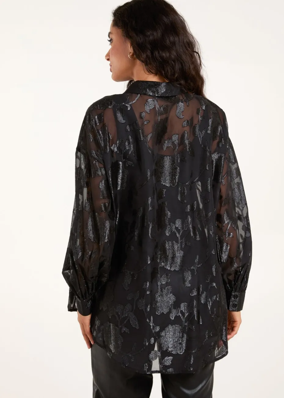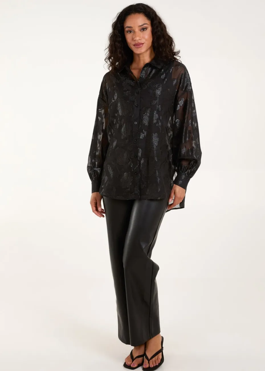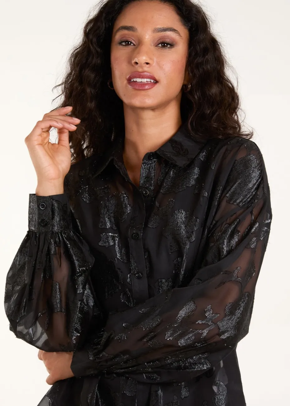 Opt for effortless glamour wearing this metallic printed shirt. Team with a PU skirt, sheer tights and court heels for a look to take you from desk to dance floor this partywear season.
