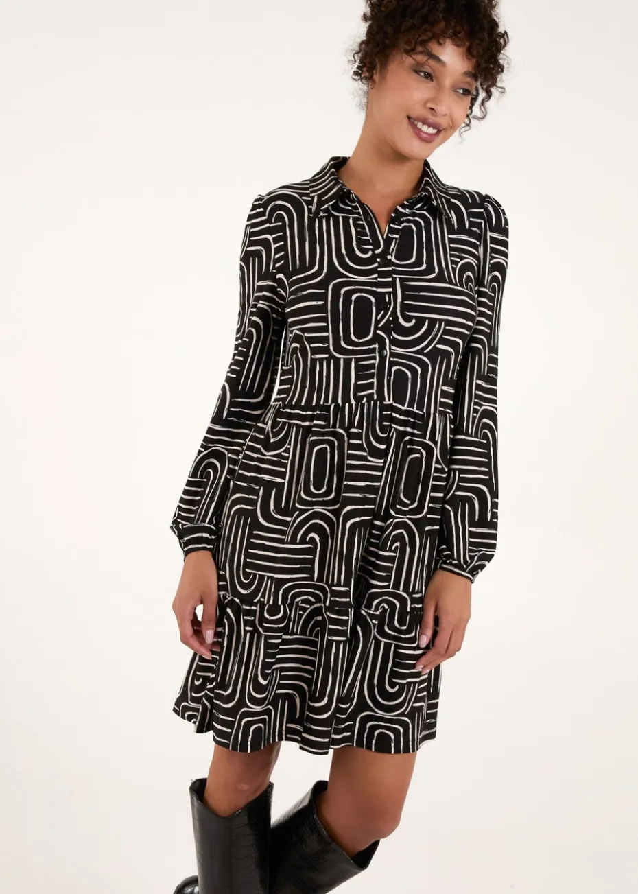 Blue Vanilla Black Button Front Smock Shirt Dress