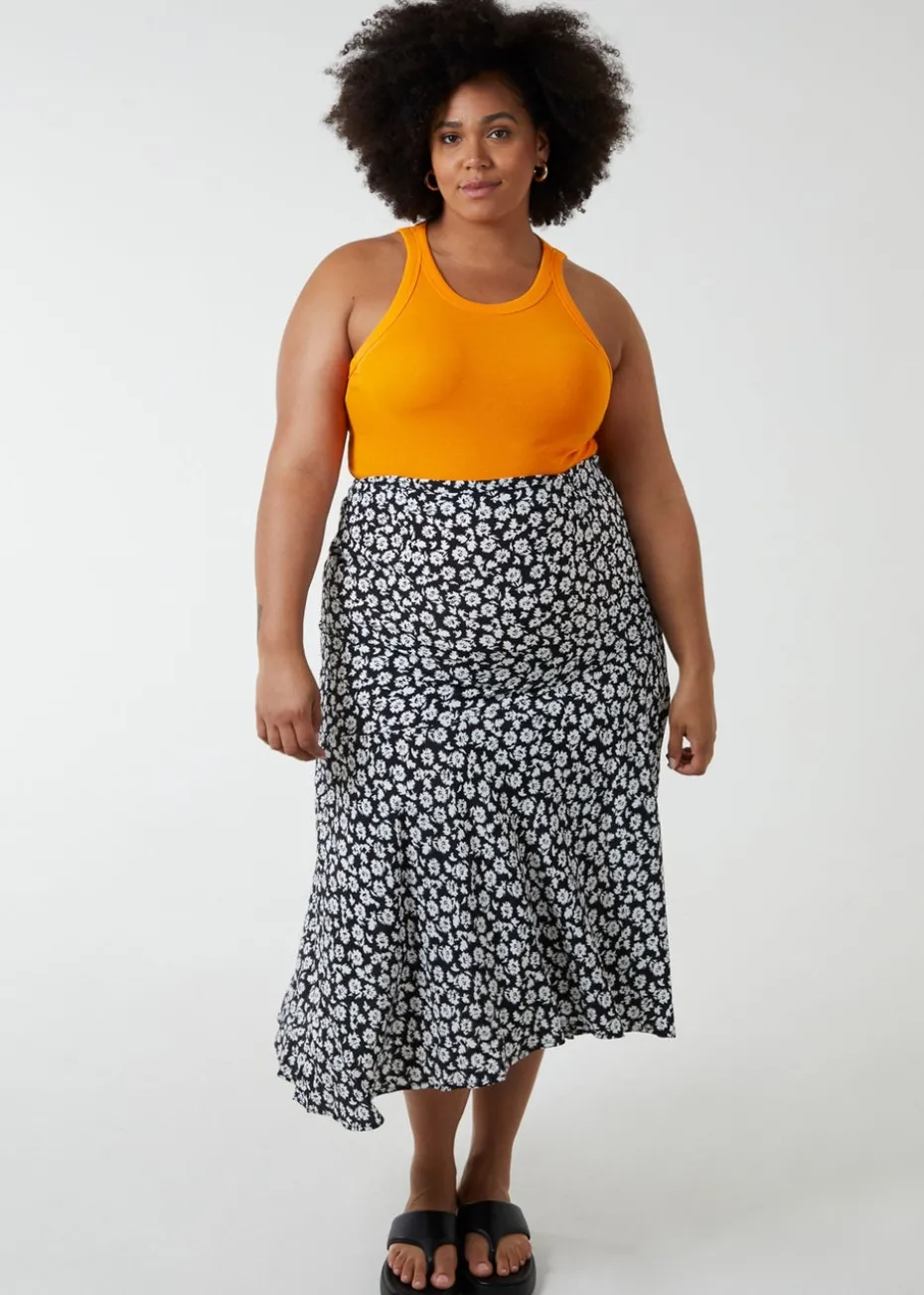 Get ready for a walk in the park with our Asymmetric Seam Midi Skirt. Pair with heels for an office look!