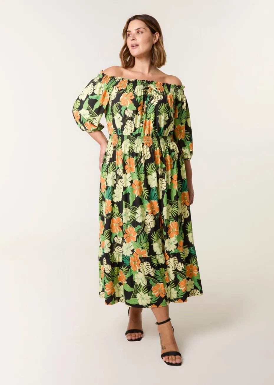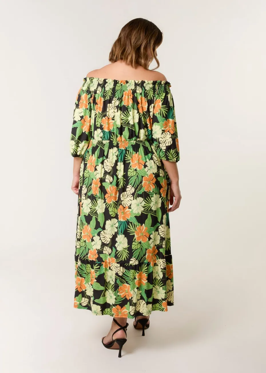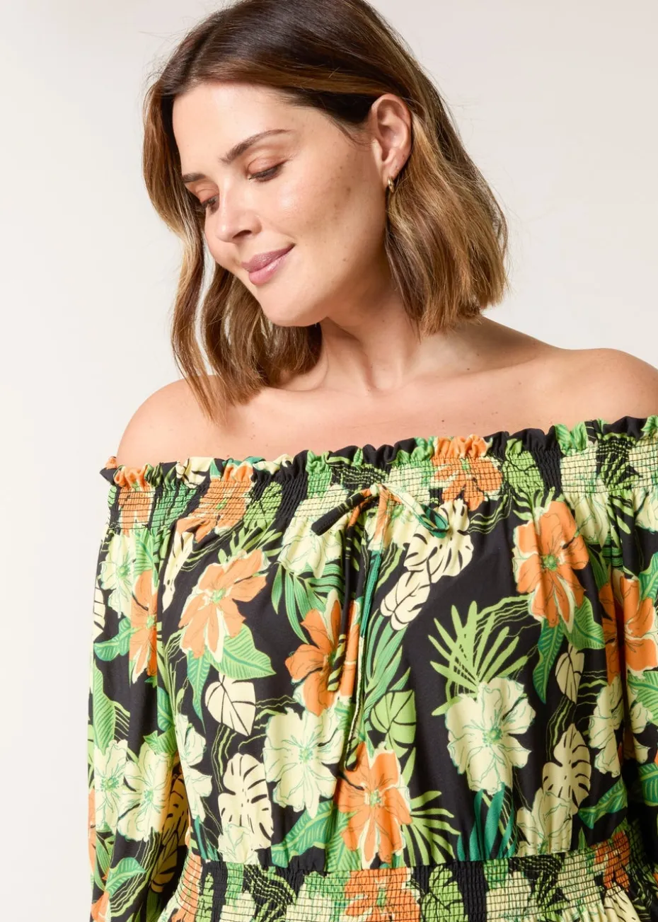 Blue Vanilla Black Curve Bardot Elasticated Midi Dress