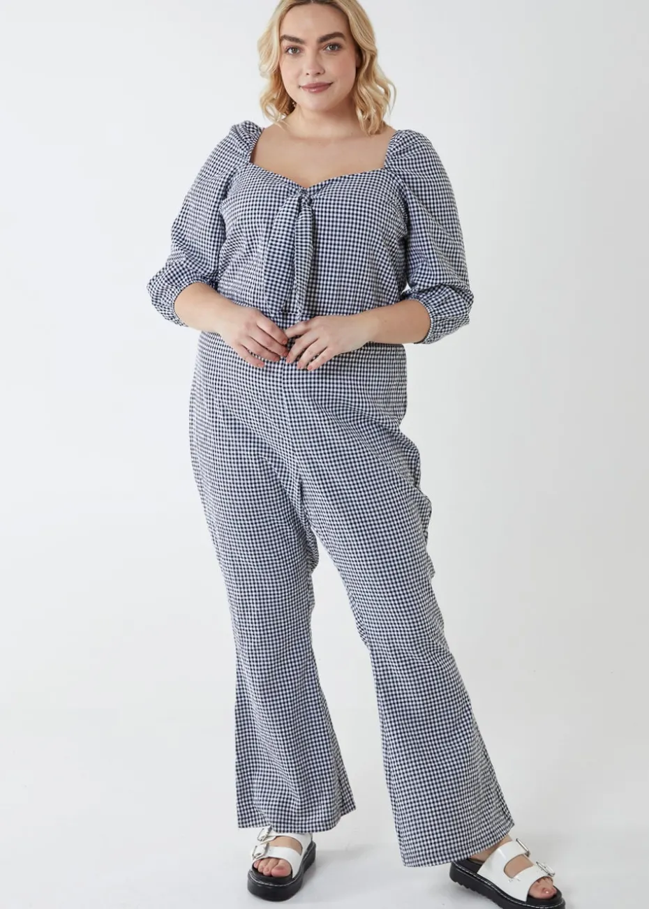Blue Vanilla Black Curve Gingham Jumpsuit