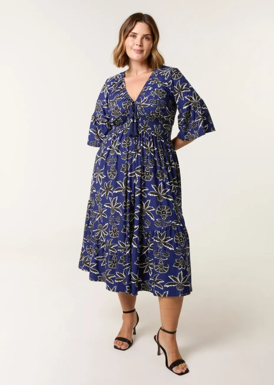 Dreaming of palm tree season! Add these elasticated neckline and shirred waist dress to your SS wardrobe for those tropical dreams! Team with gold accessories and sandals to bring this look together.