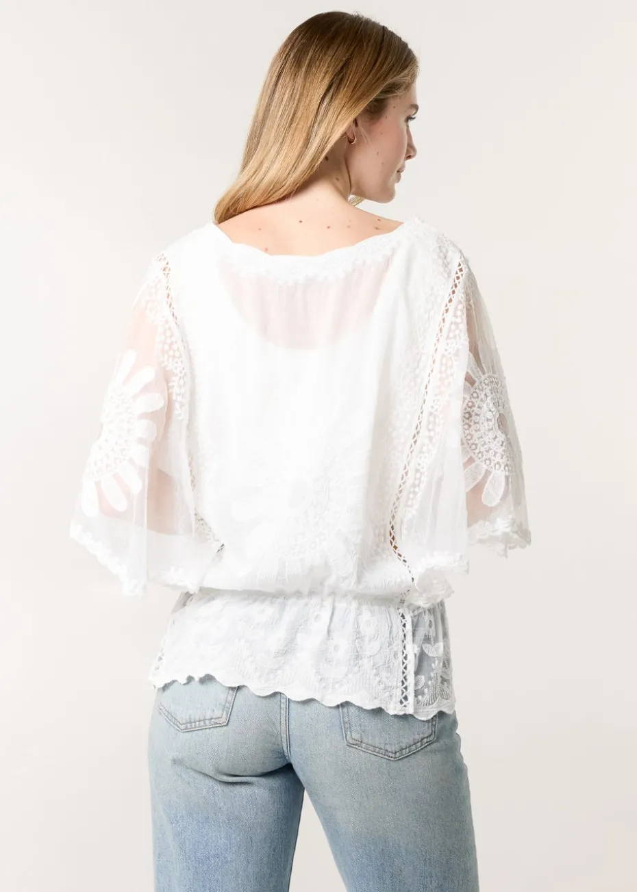 Blue Vanilla Ivory Sun Flower Lace Sleeve Blouse