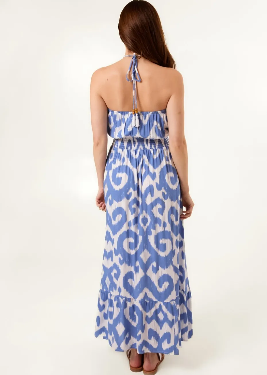 Blue Vanilla Light Blue Bandeau Printed Shirred Waist Maxi Dress