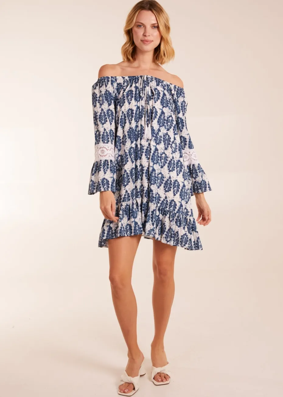 Blue Vanilla Multi Leaf Print Scoop Neck Dress