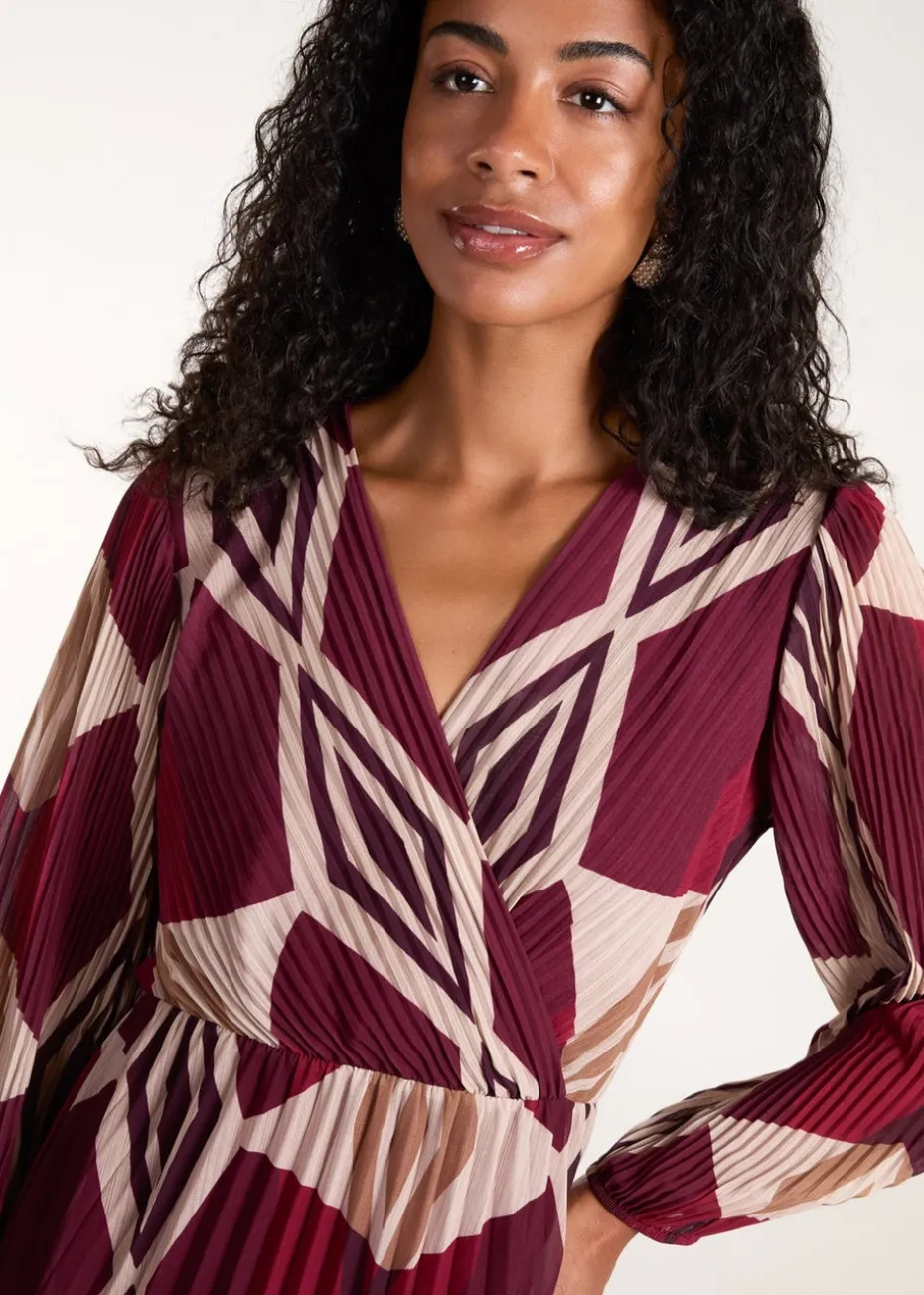 Whether it’s a wedding or evening dinner in the diary, you’ll look picture-perfect in this geometric pleated dress. Team with court heels, and be good to go!