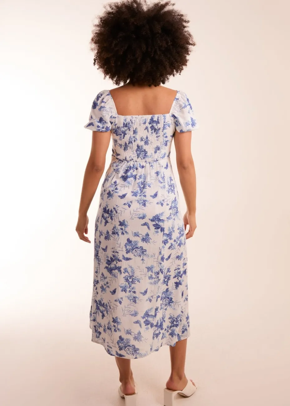 Blue Vanilla White Puff Sleeve Midi Dress With Side Split