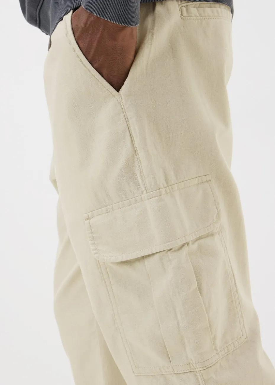 These Bone Linen Cargo Trousers are crafted from a strong yet airy linen fabric, making them ideal for warmer weather. With their relaxed fit and versatile bone colour, these trousers are perfect for creating a laid-back yet polished look.