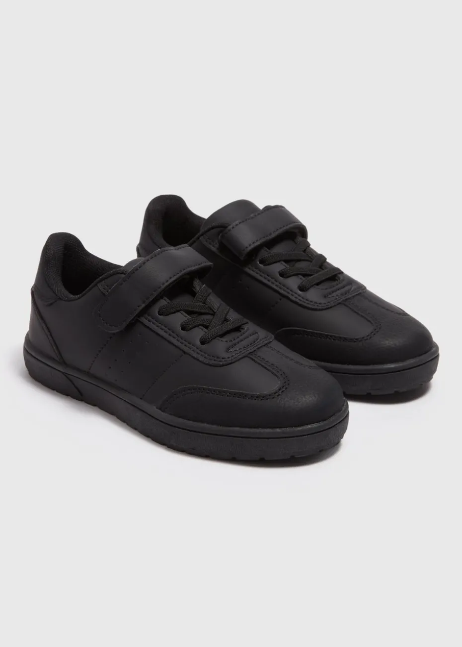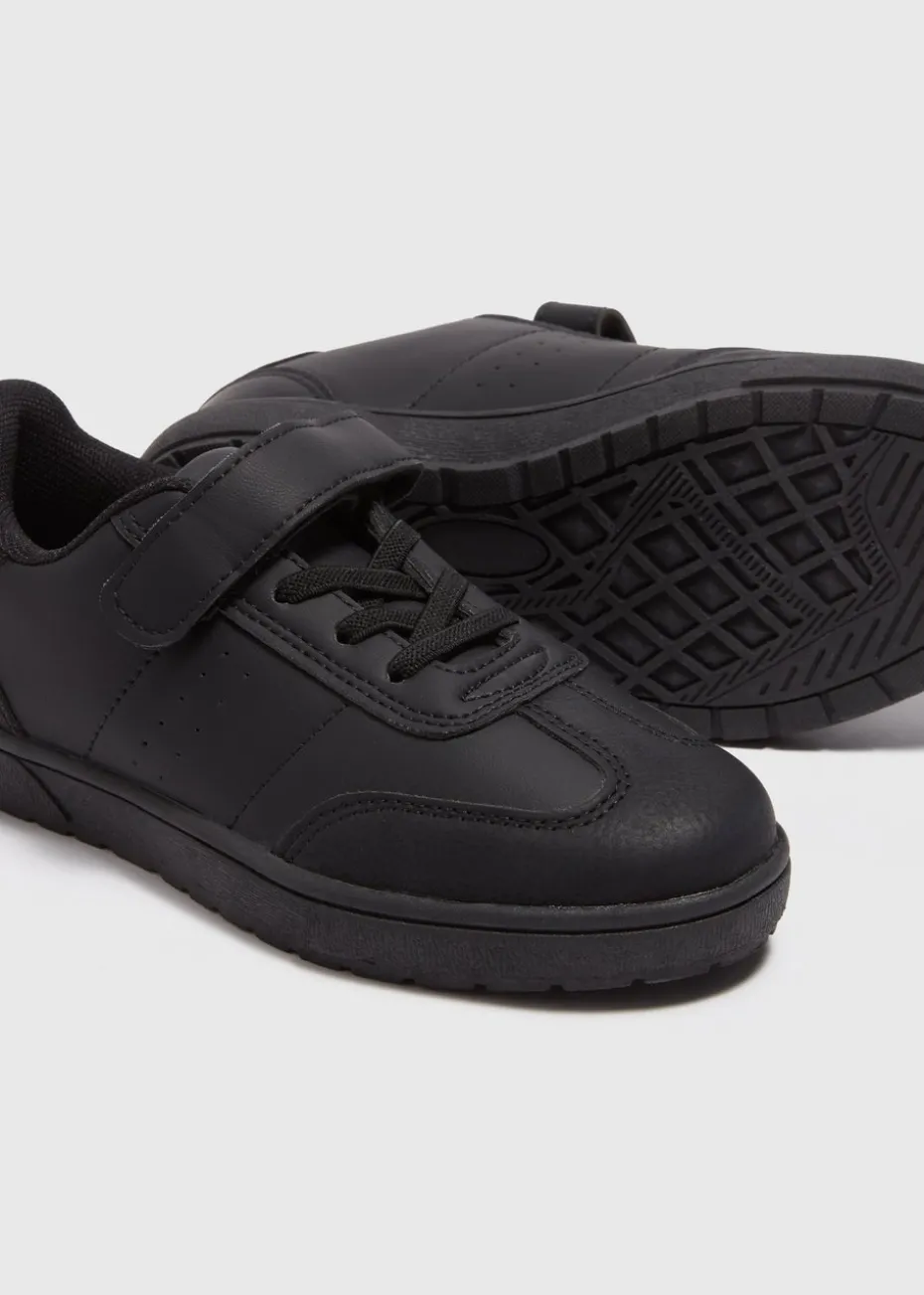 Get ready for back to school with our black school trainers. With rip tape fastening and lace up design, these shoes ensure a secure fit for their playtime adventures. The panel detailing and black colour ensures they look smart while feeling stylish. Make playtime fun with our black school trainers!