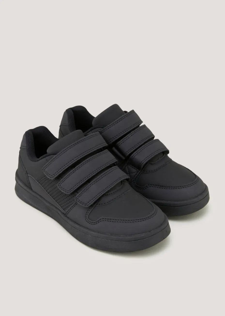 Bridging the gap between smart and comfortable, these black trainers will see him from playground to classroom in style. The simple, understated design features triple riptape strap fastenings to ensure easy on/off. Additional style notes include a spongey insock for maximum comfort and sturdy sole to ensure good grip.
