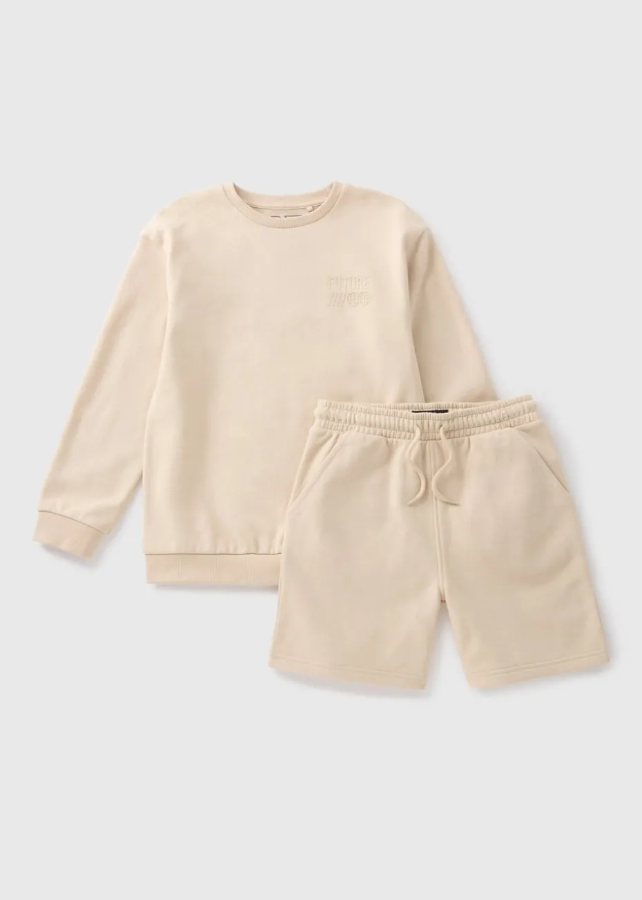 This cool two-piece set, featuring a crew neck sweatshirt and matching shorts, is perfect for your trendsetter boy. The stylish stone hue adds a pop of colour to their everyday wardrobe.