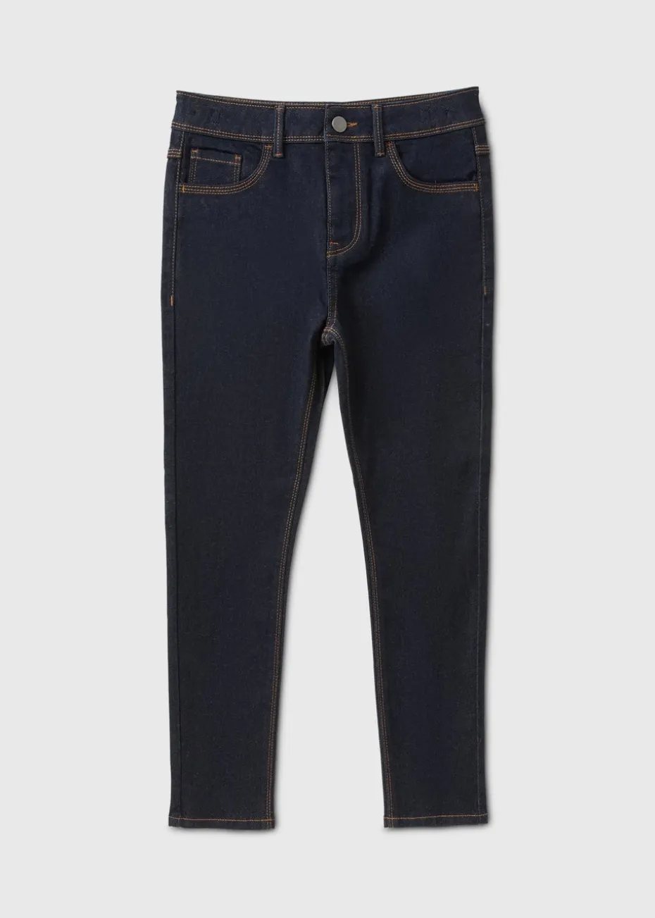 Our dark denim skinny jeans are the perfect addition to any boys’s wardrobe. These jeans are both durable and stylish with a button waistband and a skinny fit ensuring the most perfect wear. Featuring a classic five-pocket design and a comfortable wear, they’re sure to become a fast favourite. Pair them with a t-shirt and trainers for a casual, everyday look or dress them up with a shirt and blazer for a special occasion.
