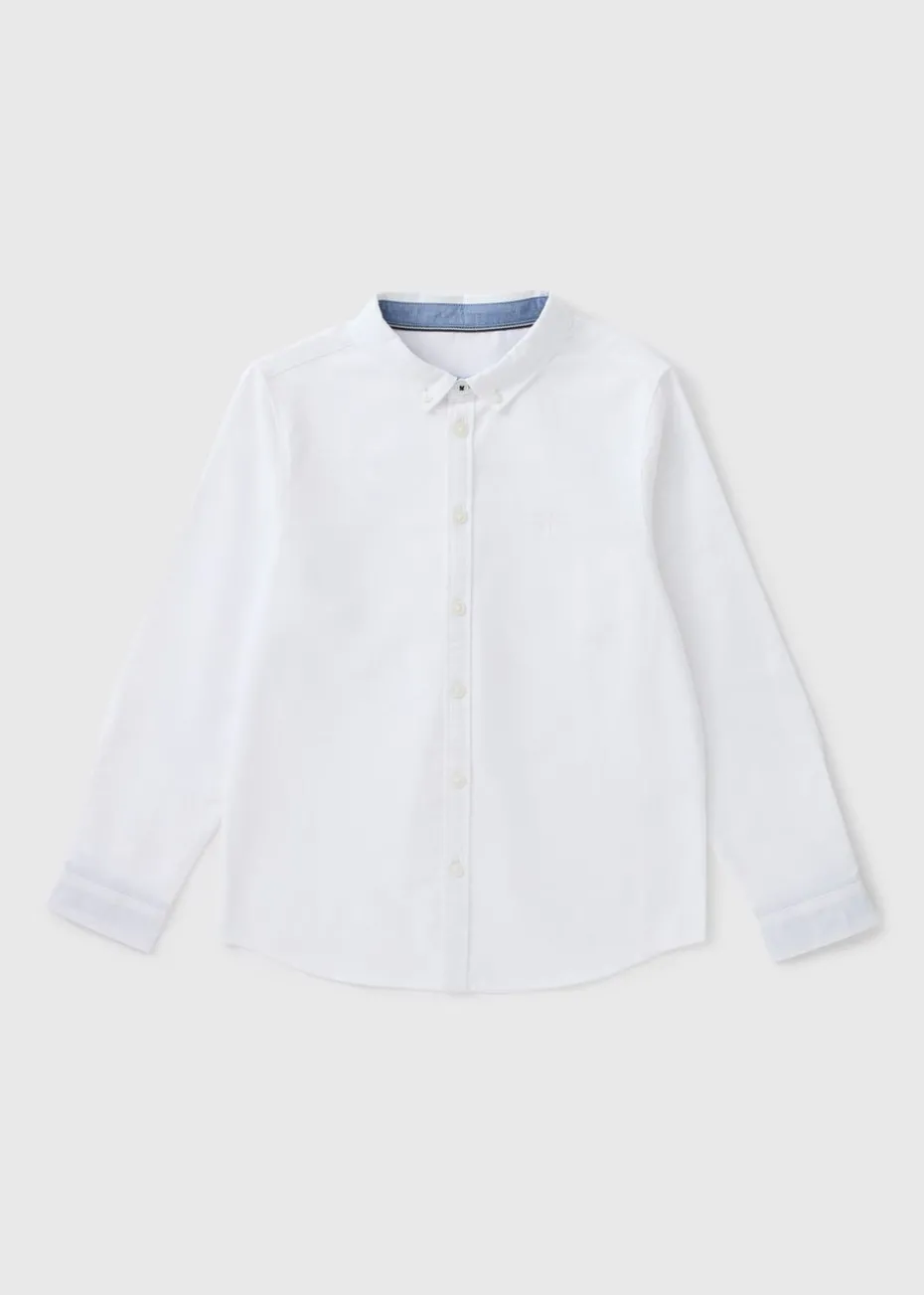 Our crisp white Oxford long sleeve shirt is a timeless classic that will be a staple for any boys wardrobe. Cut from 100% cotton for supreme comfort, this shirt will keep them feeling as good as they look all day long. The long sleeves and button-down collar make it ideal for formal occasions, while the white hue ensures it can be easily paired with any trousers or shorts.