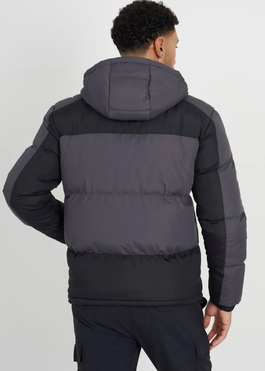 Brave Soul Black Panel Detail Padded Hooded Jacket