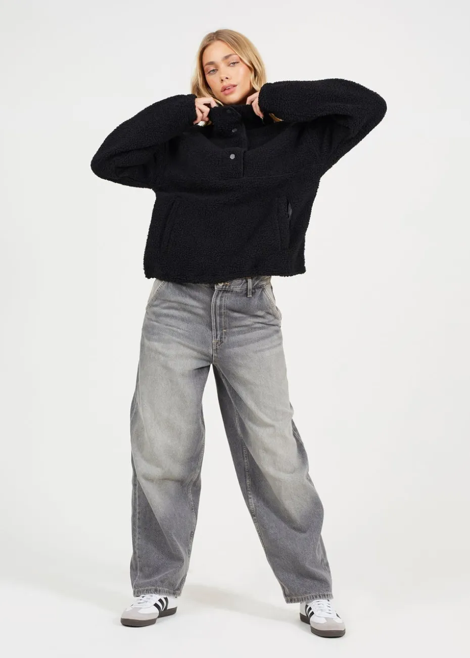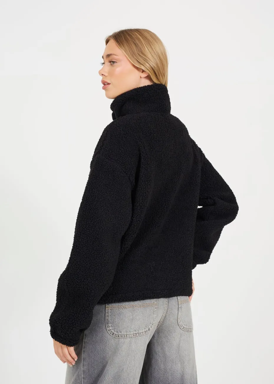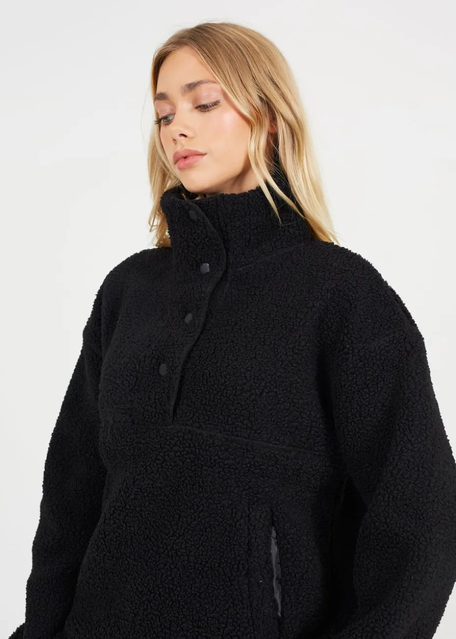 Brave Soul Black Sherpa Quarter Button Neck Fleece