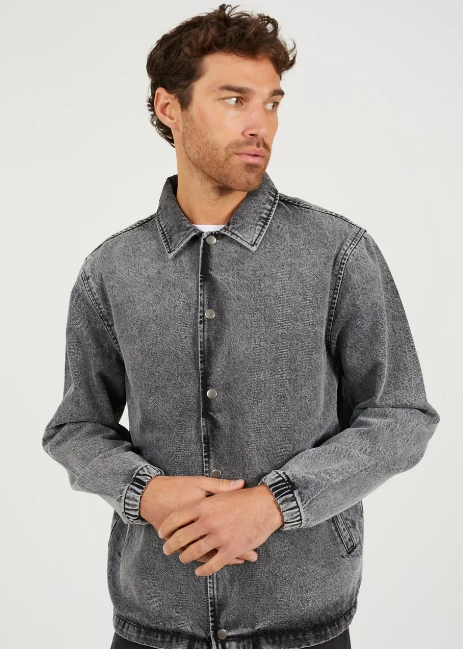 Update your outerwear collection with this coach style jacket from Brave Soul. Made from acid wash denim, this jacket offers a trendy look, perfect for any casual occasion or layering over your favourite outfits. Featuring popper stud fastening, elasticated cuffs and two lower welt pockets providing practical storage for your essentials. Model wears UK size M.