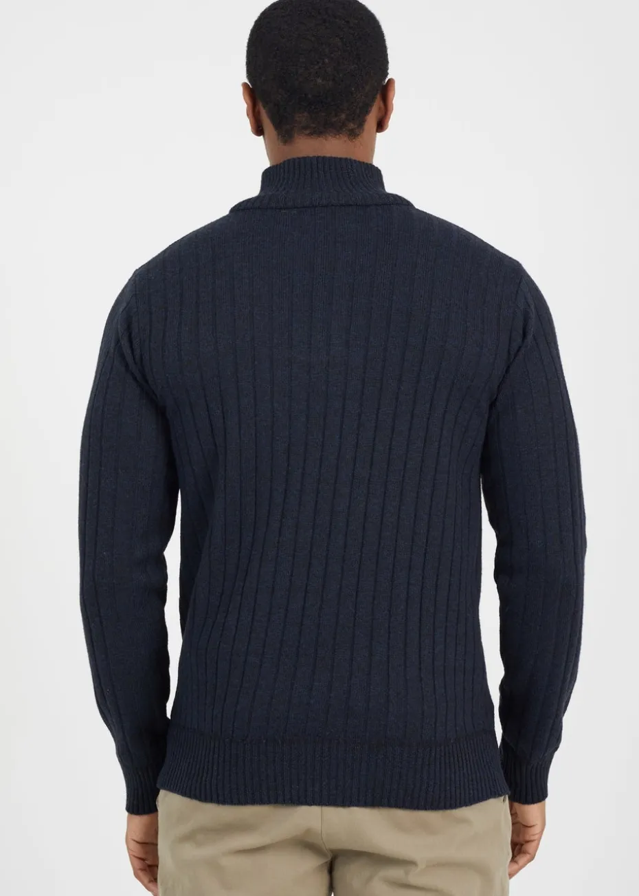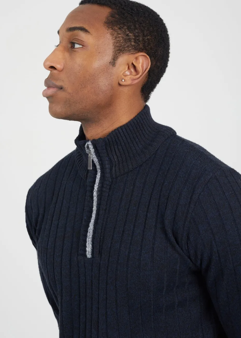 Brave Soul Navy Quarter Zip Funnel Neck Rib Knit Jumper
