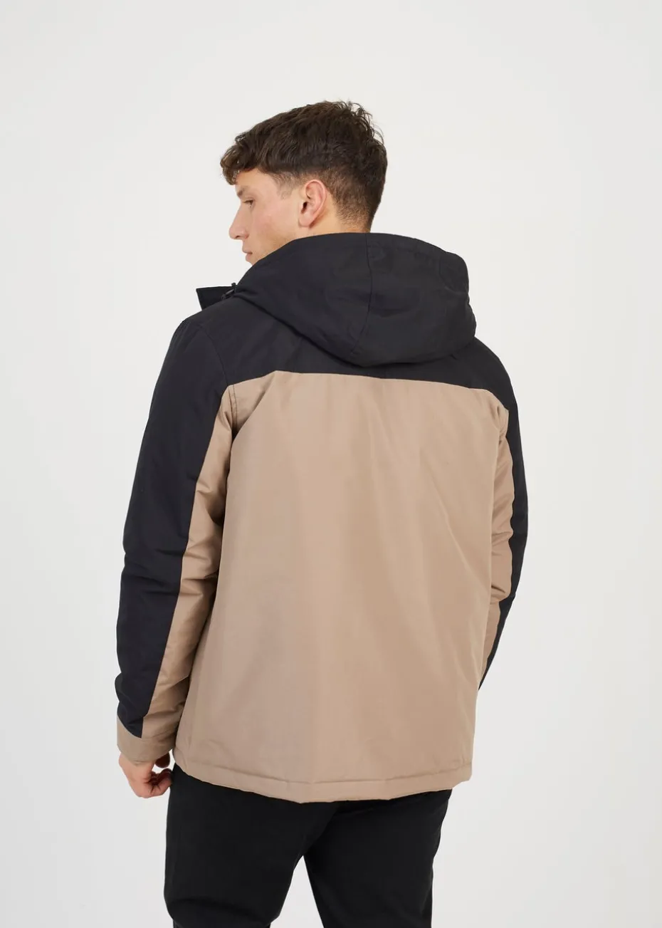Brave Soul Stone Colour Block Hooded Jacket