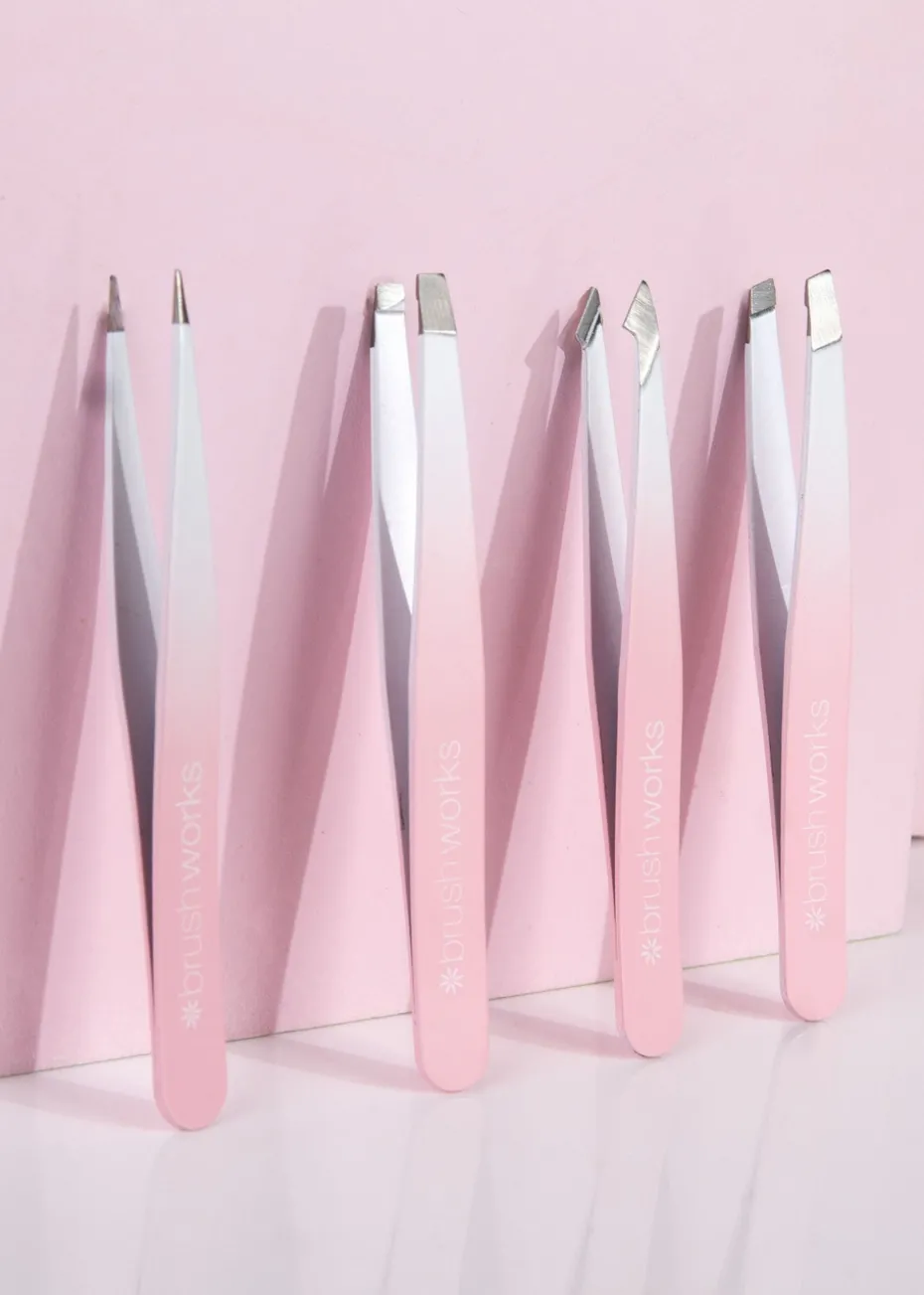 All the essentials you need for your makeup bag! Includes a set of 4 multi-tipped tweezers, a separating eyelash curler, sharpener and a compact dual-side mirror.