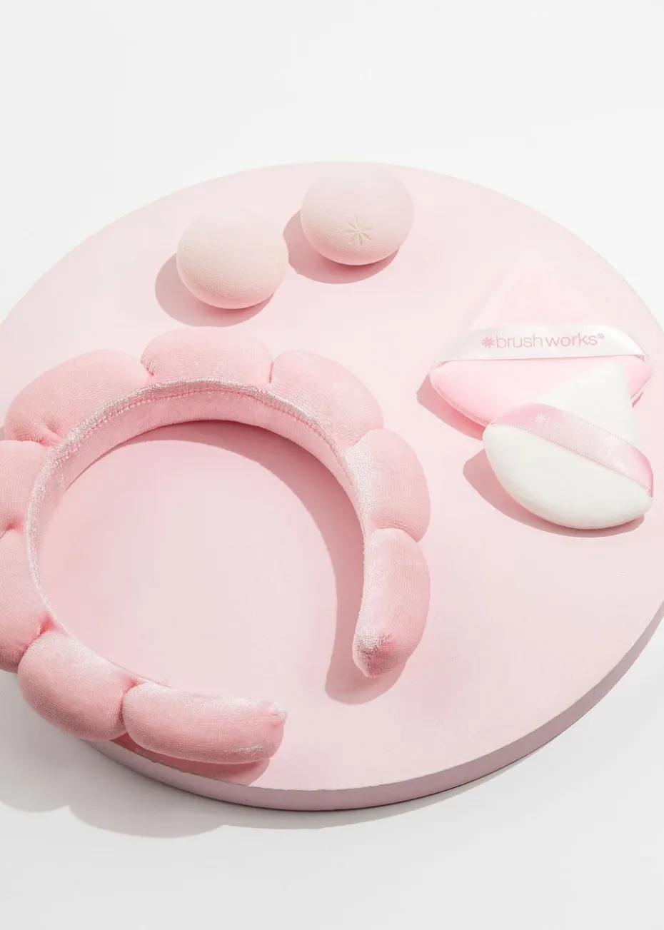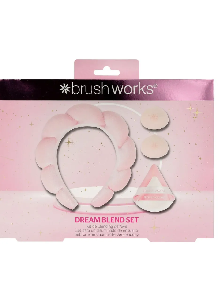 Introducing the Dream Blend —an essential companion for your beauty routine. The cloud headband keeps your hair comfortably in place while applying makeup. Accompanied by two blending drops for seamless makeup application and a duo of triangular powder puffs for precise setting, this set offers a perfect blend of style and practicality. Elevate your beauty experience with these must-have accessories, ensuring a flawless look every time. This set includes: 1 Pink Cloud Headband, 2 Blending Drops and 1 Powder Puff Duo.