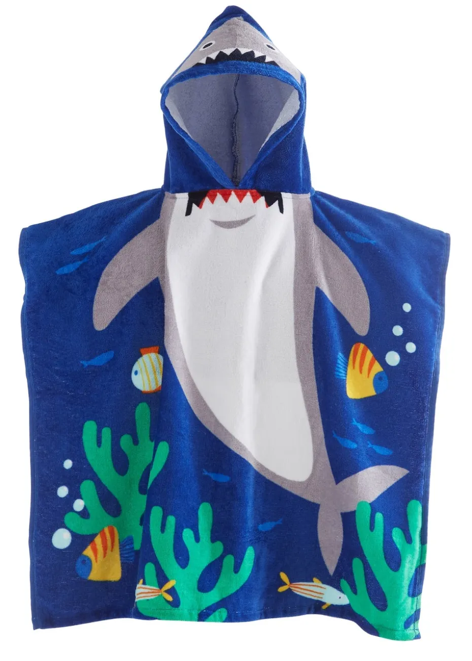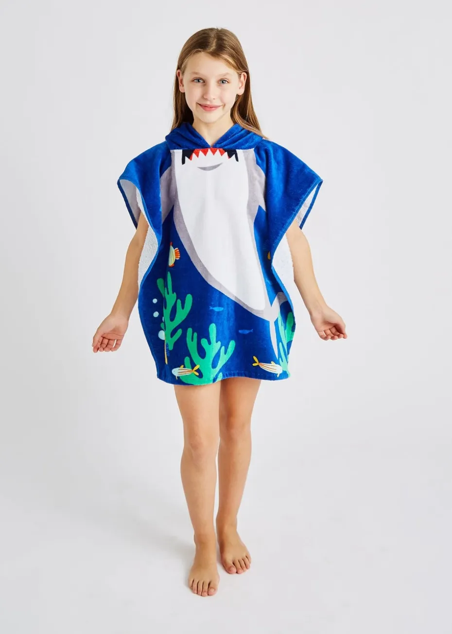 Catherine Lansfield Blue Kids Shark Hooded Towel Poncho