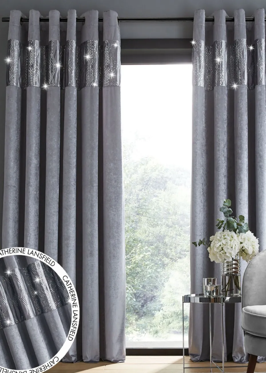 Catherine Lansfield Crushed Velvet Glamour Lined Eyelet Curtains