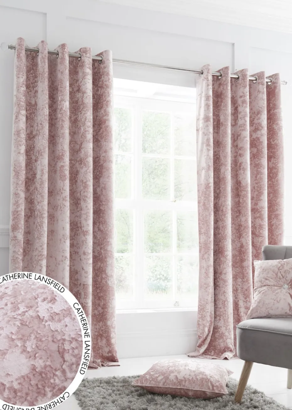Catherine Lansfield Crushed Velvet Lined Eyelet Curtains