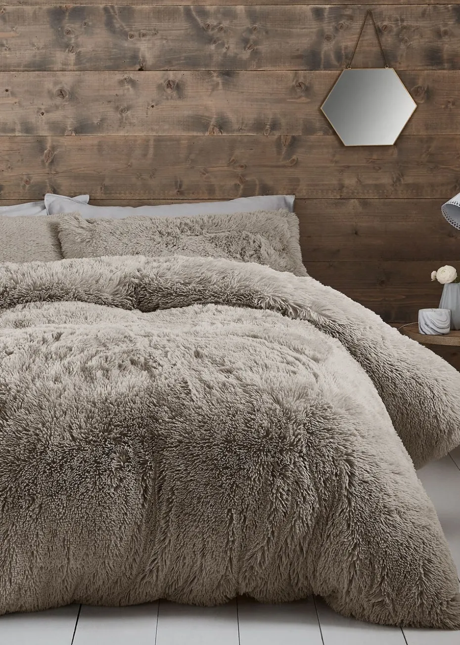 Cuddle up, get cosy and super warm under this fabulously super soft deep pile shaggy faux fur bedding with a plush soft touch fleece reverse perfect for a duvet day. Catherine Lansfield is renowned for style and quality – designed and developed in Great Britain. Ethically sourced overseas and made to quality and human-ecological safety standards.