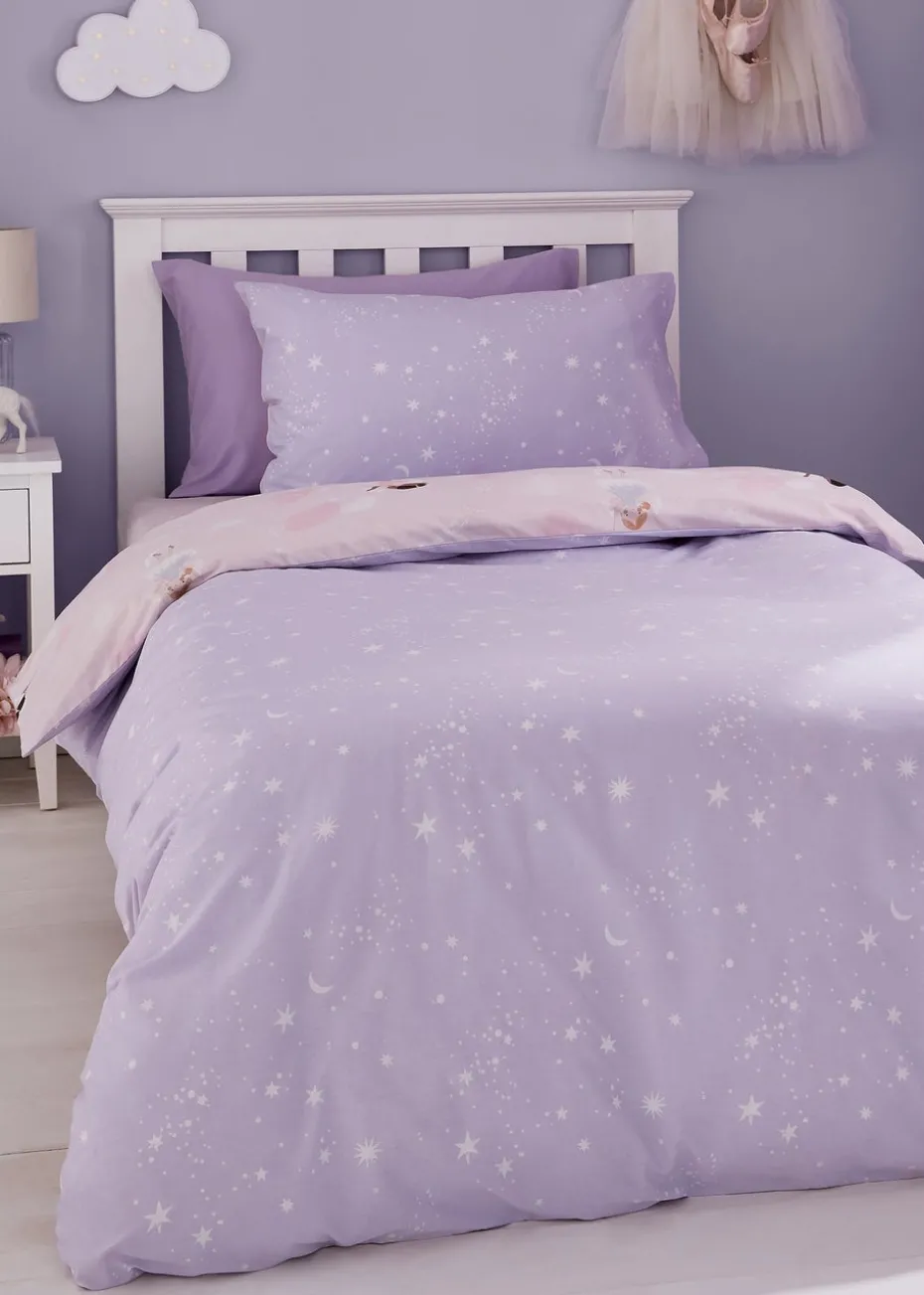 Perfect for little ones who dream of dancing amongst the stars. This beautiful design features delicate ballerina fairies, gracefully pirouetting on a pretty pink base. The set is fully reversible, with twinkling stars on a contrasting lilac base, giving you two magical looks in one. Created from easy-care recycled polyester and soft responsibly sourced cotton, blended together for everyday use. Catherine Lansfield is renowned for style and quality – designed and developed in Great Britain. Made to quality and human-ecological safety standards, in accordance with STANDARD 100 by OEKO-TEX®.