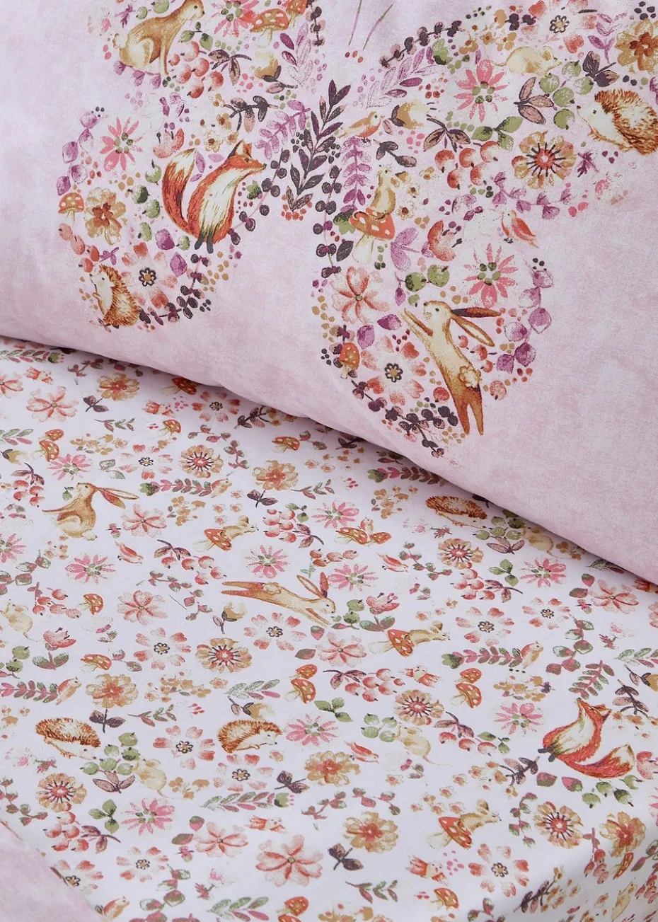 Add a touch of enchantment to your little one’s bedroom with this butterfly sheet. This beautiful design features intricate hand-painted style butterflies, illustrated with pretty woodland florals and animals on a pretty pink base. Created from easy-care recycled polyester and soft responsibly sourced cotton, blended together for everyday use. Catherine Lansfield is renowned for style and quality – designed and developed in Great Britain. Made to quality and human-ecological safety standards, in accordance with MADE IN GREEN by OEKO-TEX®.