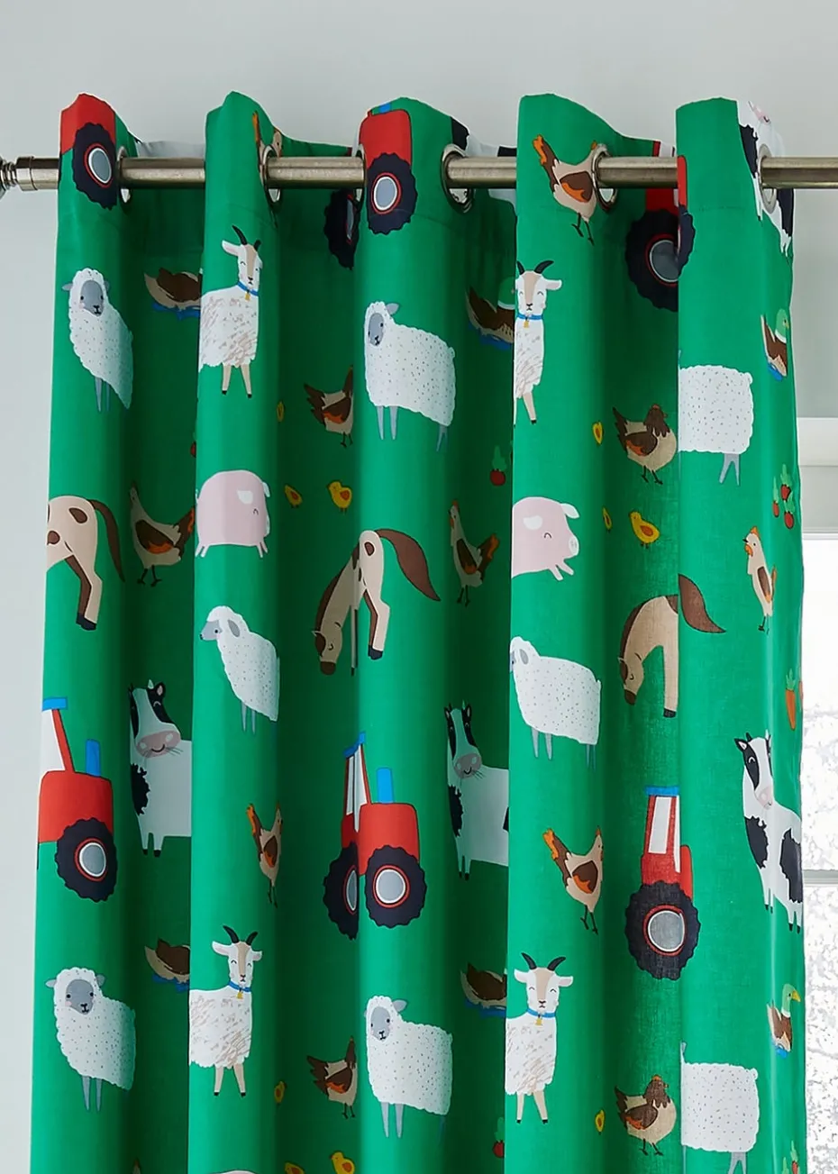Catherine Lansfield Farmyard Animals Fully Reversible Eyelet Curtains