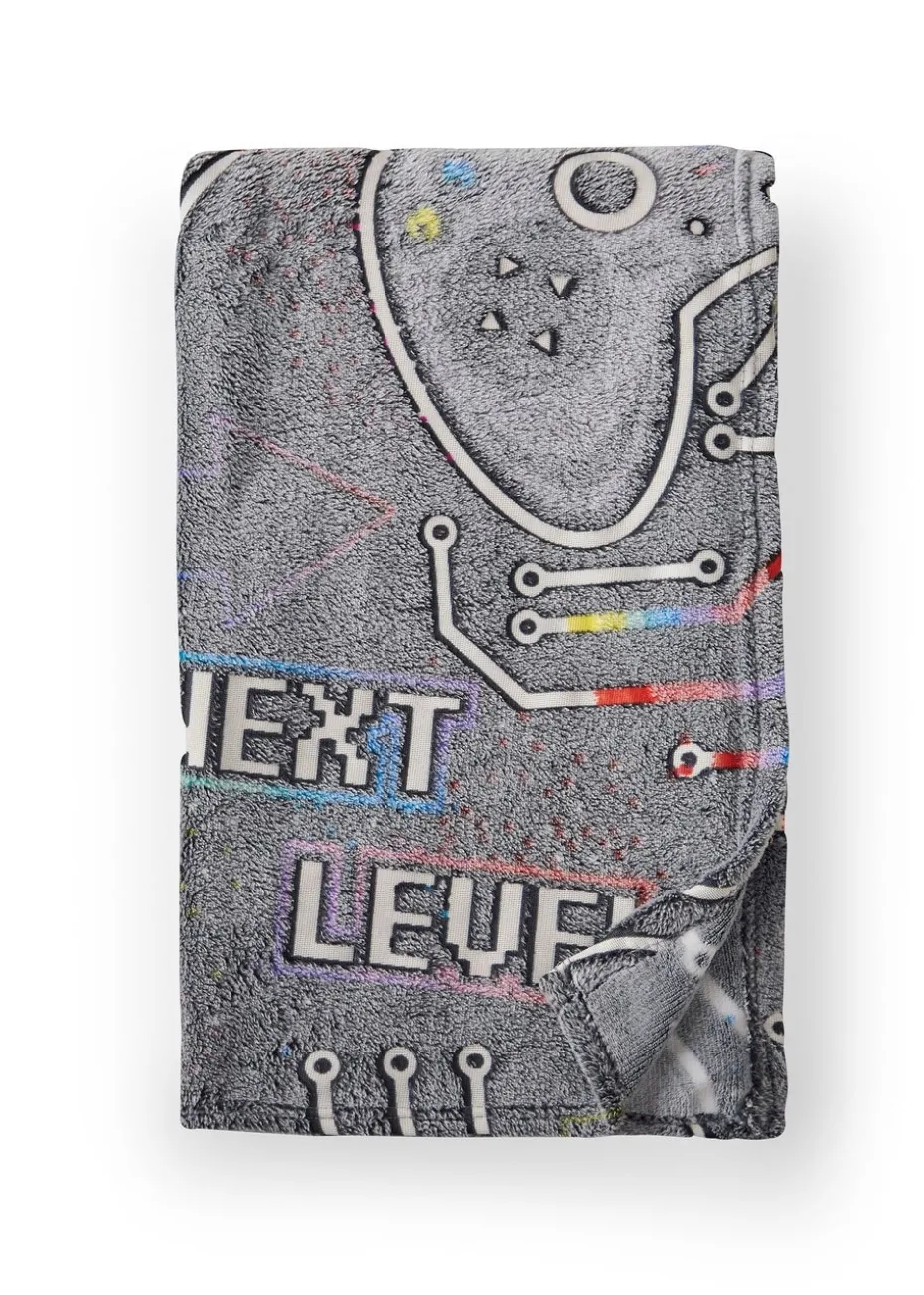 Bring an epic atmosphere to your gaming space with the super cool blanket, boasting a high-tech controller design and glow-in-the-dark features. Made with soft fleece material, this throw will keep your child snuggly and comfortable all night long.