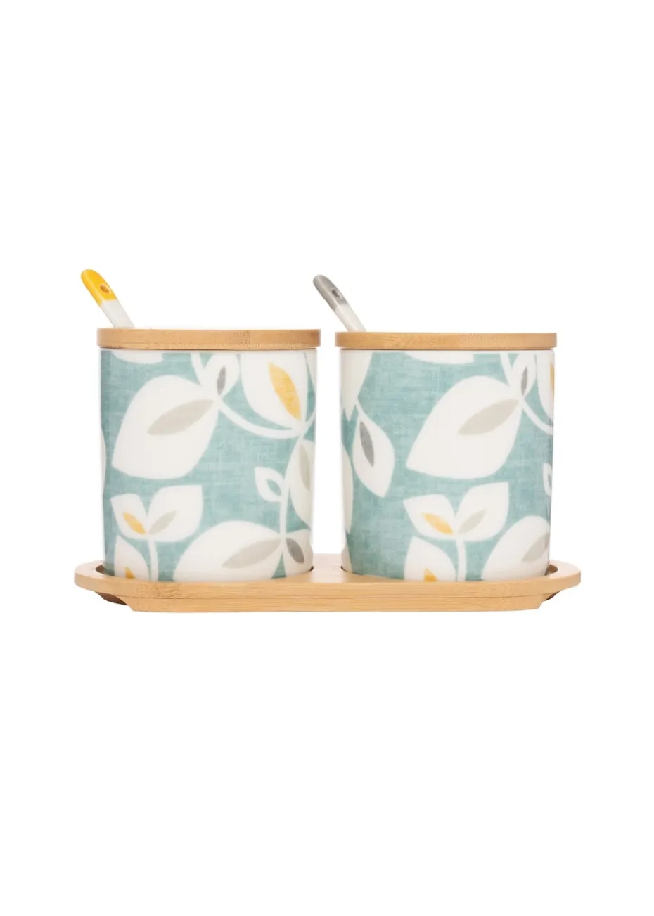The Catherine Lansfield Inga Condiment Pot Set is perfect for elevating your dining experience! This stylish set includes two pots and two spoons, making it easy to serve your favourite condiments. The lidded pots keep contents fresh, while the sleek design adds a touch of perfection to any table setting. Impress your guests and upgrade your dining experience. Pots: Before first use, wash in warm soapy water and dry thoroughly. Dishwasher safe. Bamboo lid: Hand wash only. Before first use, was gently in warm soapy water and dry thoroughly. Do not soak. Ensure product is fully dry before storing. Wood: Hand wash only.
