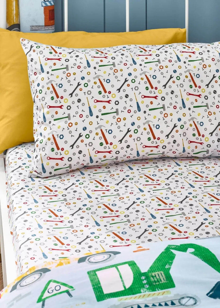 Catherine Lansfield Grey Brushed Cotton Football Stars Fitted Sheet