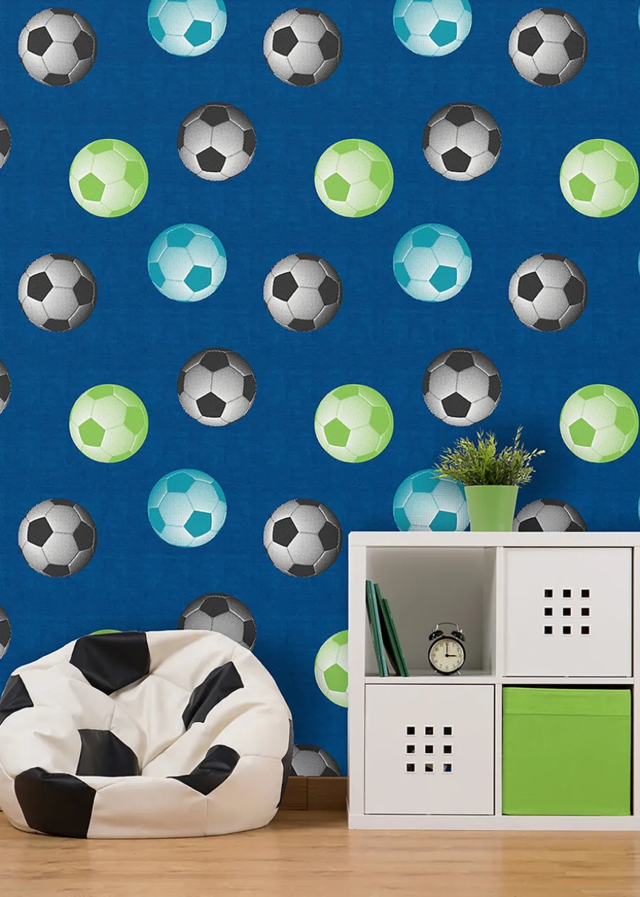 Footy mad? Transform their room into a football fan’s dream with this cool wallpaper design by Catherine Lansfield, featuring footballs in bright shades of blue and green. Dimension L 10.05 x W 53cm
