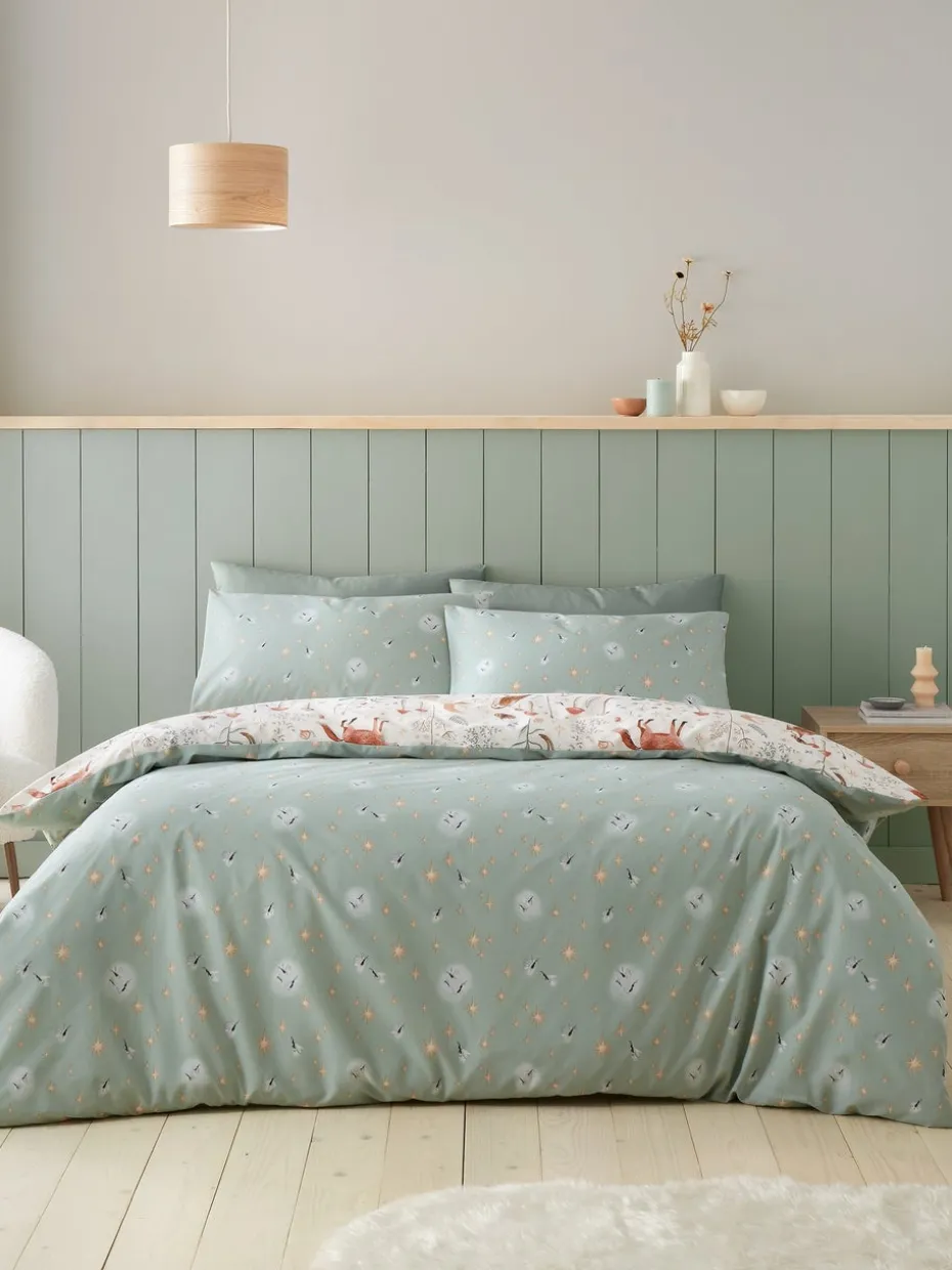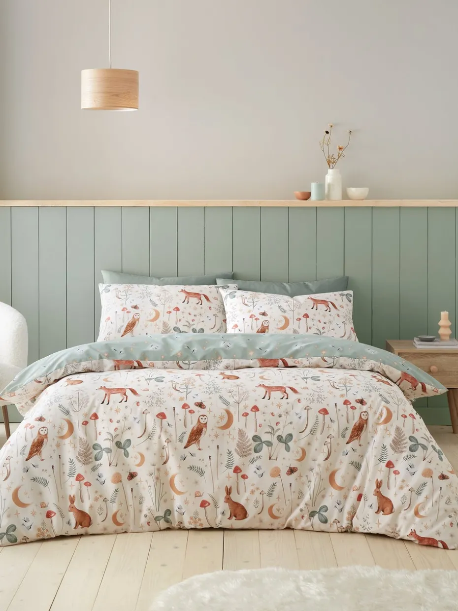 Catherine Lansfield Natural Enchanted Twilight Animals Reversible Duvet Cover Set with Pillowcases