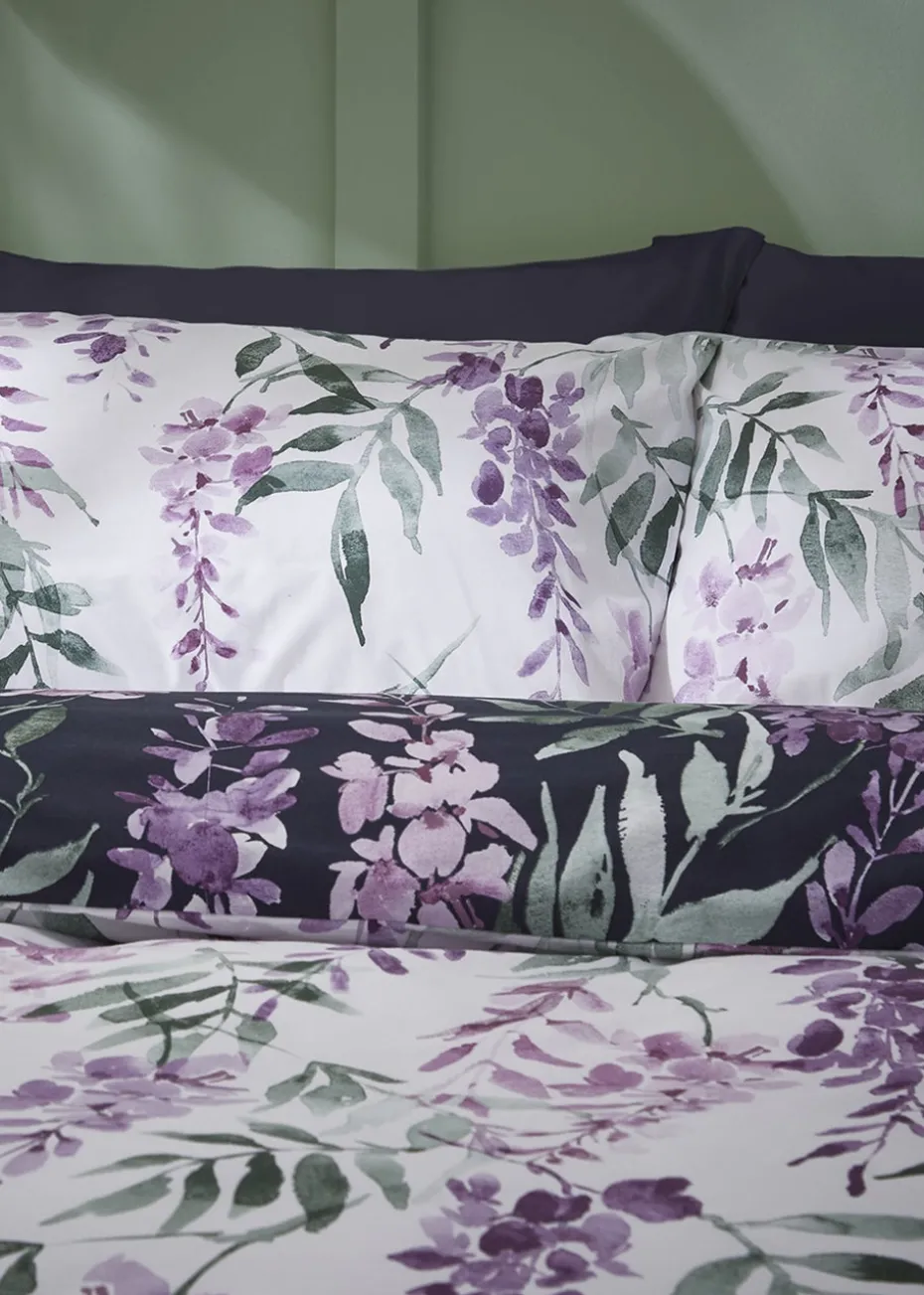 Bring the beauty of the outside in with this whimsical wisteria bedlinen. Painterly style flowers with contrasting backdrops trail down this fully reversible bedlinen, fashioning a beautiful look for all seasons. Created from easy-care and durable polycotton fabric perfect for everyday use. Catherine Lansfield is renowned for style and quality – designed and developed in Great Britain. Ethically sourced overseas and made to quality and human-ecological safety standards, in accordance with MADE IN GREEN by OEKO-TEX®.