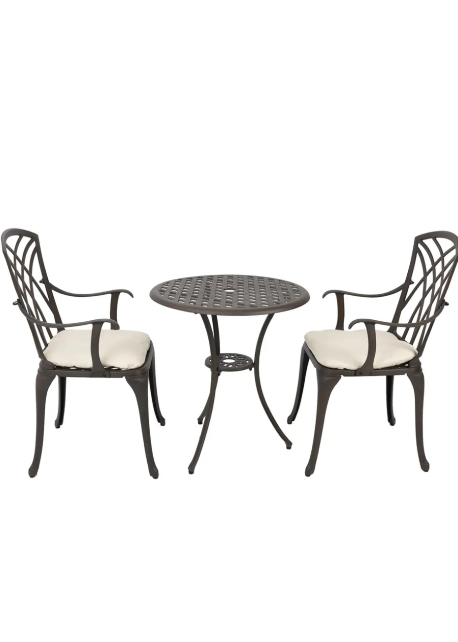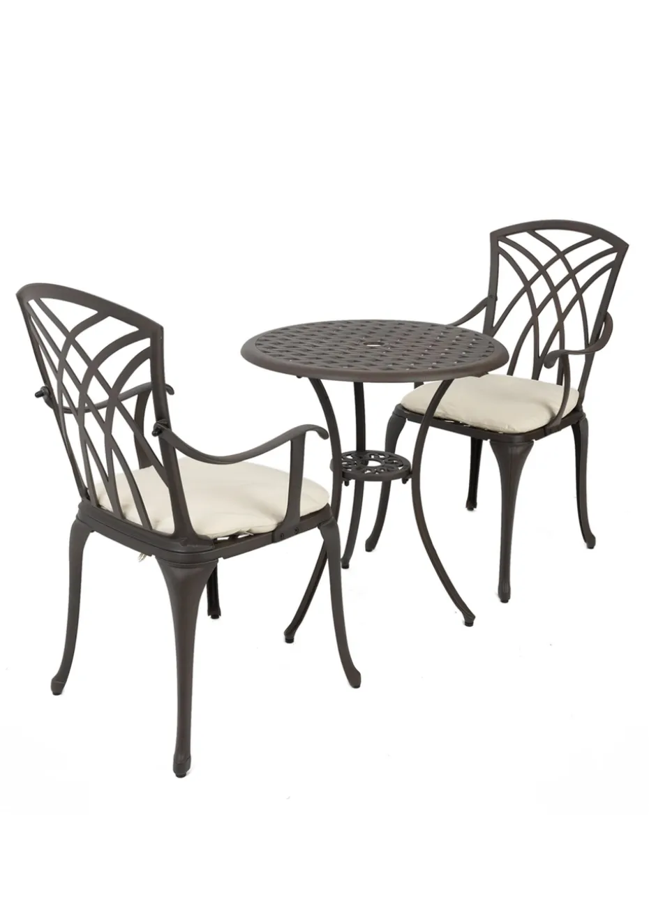 Charles Bentley Furniture Cast Aluminium Bistro Set Black Table & 2 Arm Chairs (3 Piece)