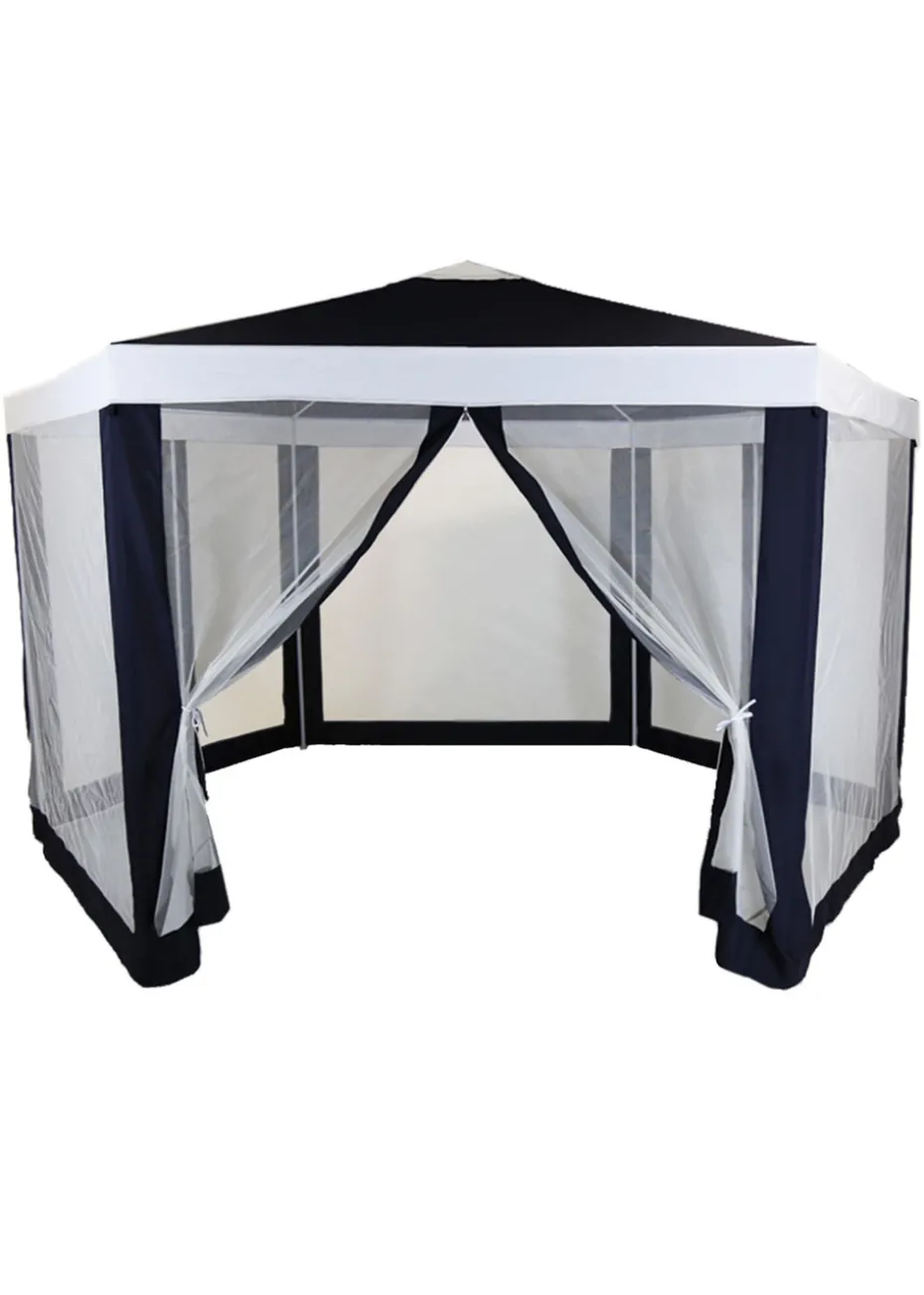 This Charles Bentley Hexagonal Gazebo is a perfect garden accessory for dining al fresco this summer. Constructed with a highly durable, powder-coated frame and blue and beige canopy this is ideal for keeping you cool in the shade or to be used as protection against wind or rain and also features mesh sides which gives a pleasant breathable space to relax in. It’s both easy to erect and disassemble so can be stored away easily to utilise space.